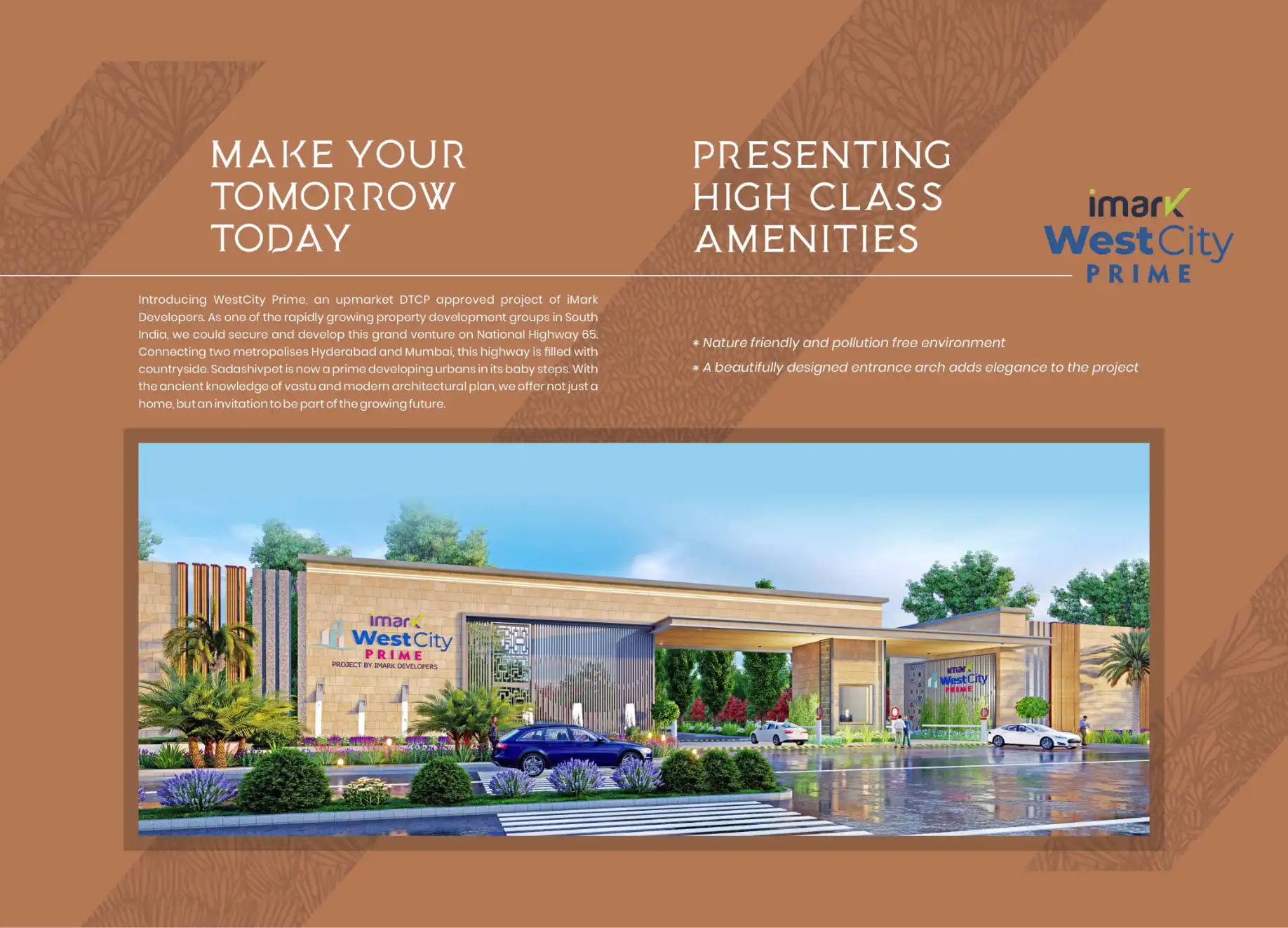 Introducing WestCity Prime, an upmarket DTCP approved project of iMark Developers. As one of the rapidly growing property development groups in South India, we could secure and develop this grand venture on National Highway 65. Connecting two metropo...