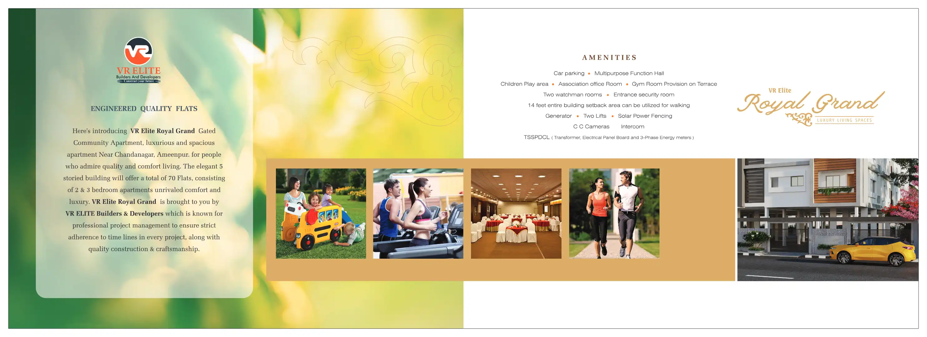 VR Elite Royal Grand Gated Community Apartment, luxurious and spacious apartment Near Chandanagar, Ameenpur. for people who admire quality and comfort living. The elegant 5 storied building will offer a total of 70 Flats, consisting of 2 & 3 bedroom ...
