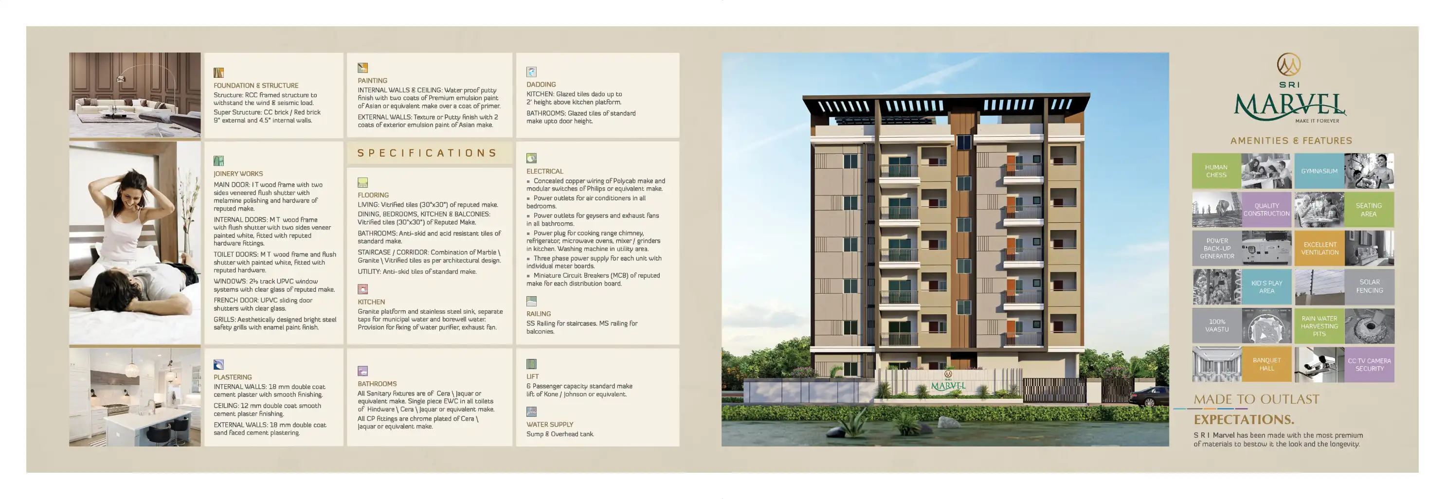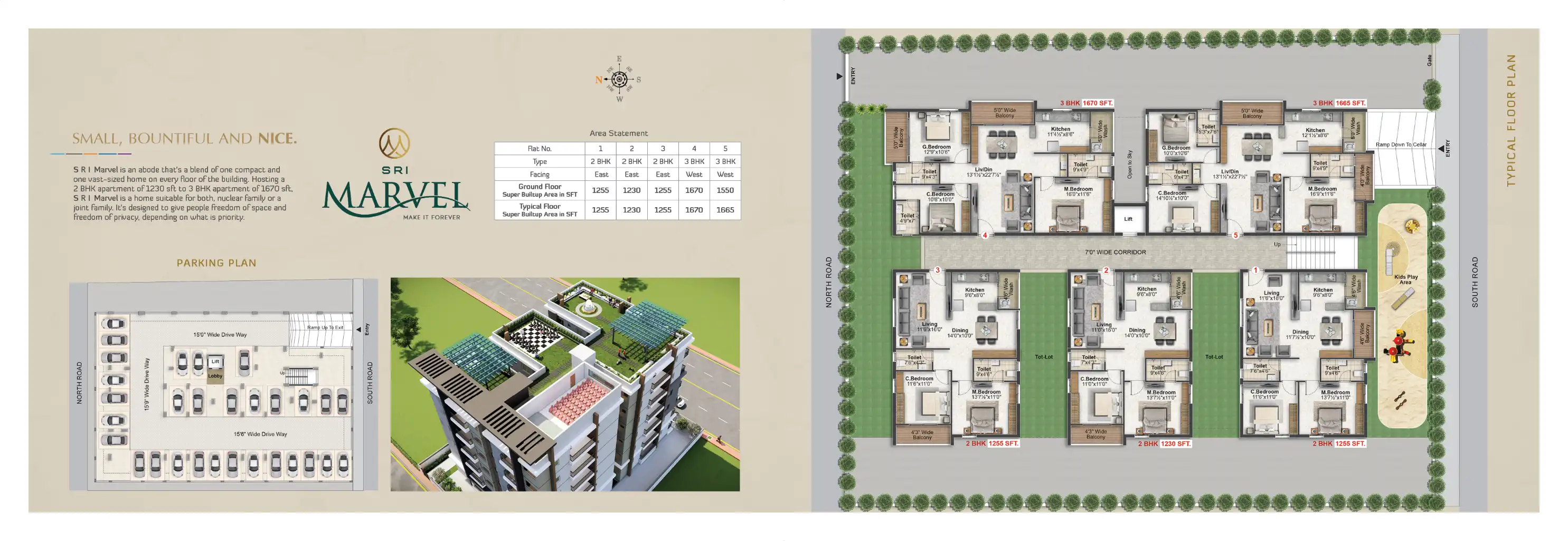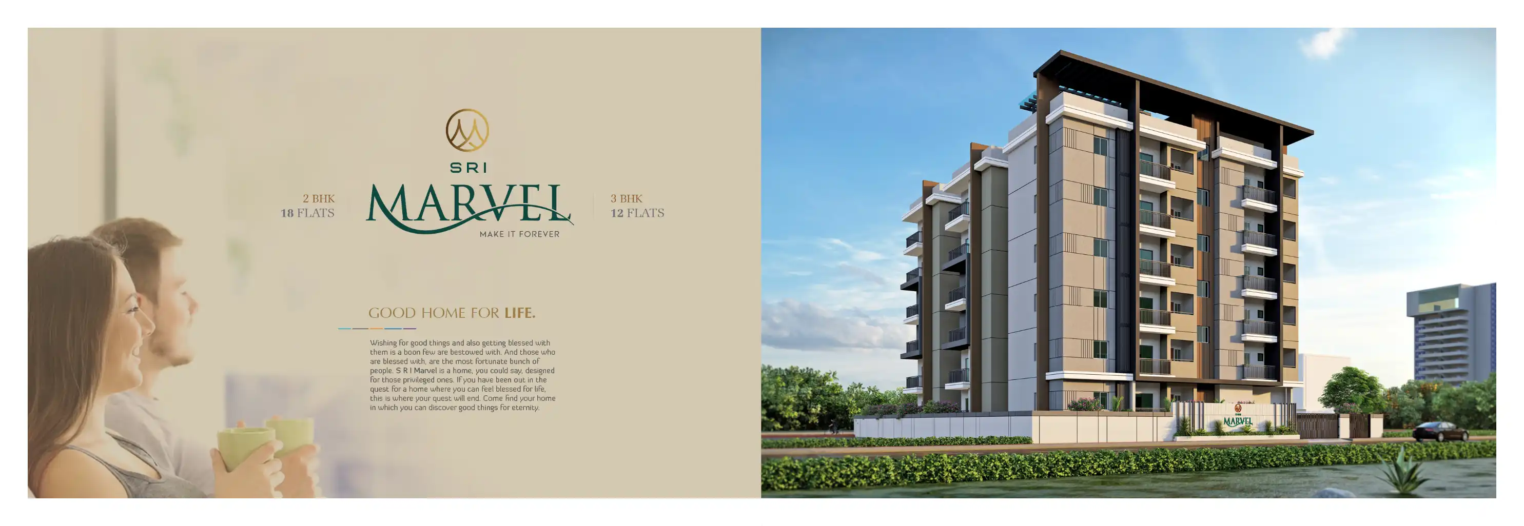 SRI Marvel is an abode that's a blend of one compact and one vast-sized home on every floor of the building. Hosting a 2 BHK apartment of 1230 sft to 3 BHK apartment of 1670 sft, SRI Marvel is a home suitable for both, nuclear family or a joint famil...