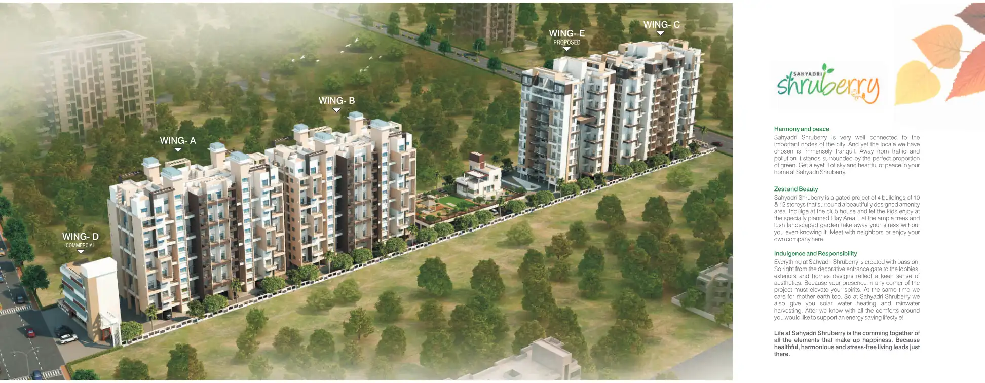 Sahyadri Shruberry is a gated project of 4 buildings of 10 & 12 storeys that surround a beautifully designed amenity area. Indulge at the club house and let the kids enjoy at the specially planned Play Area. Let the ample trees and lush landscaped ga...