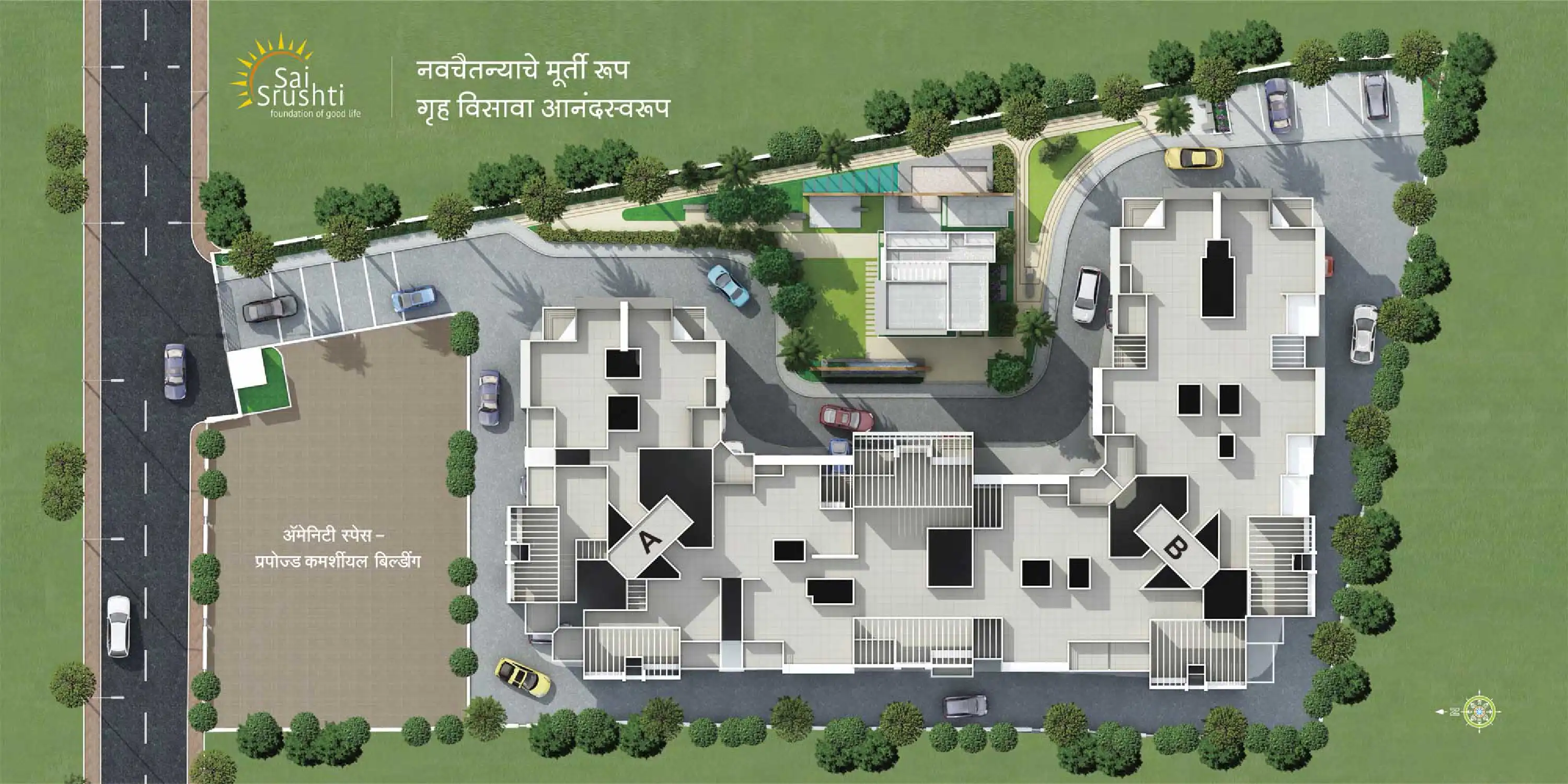 Sai Srushti offers 1 & 2 BHK flats with modern amenities.