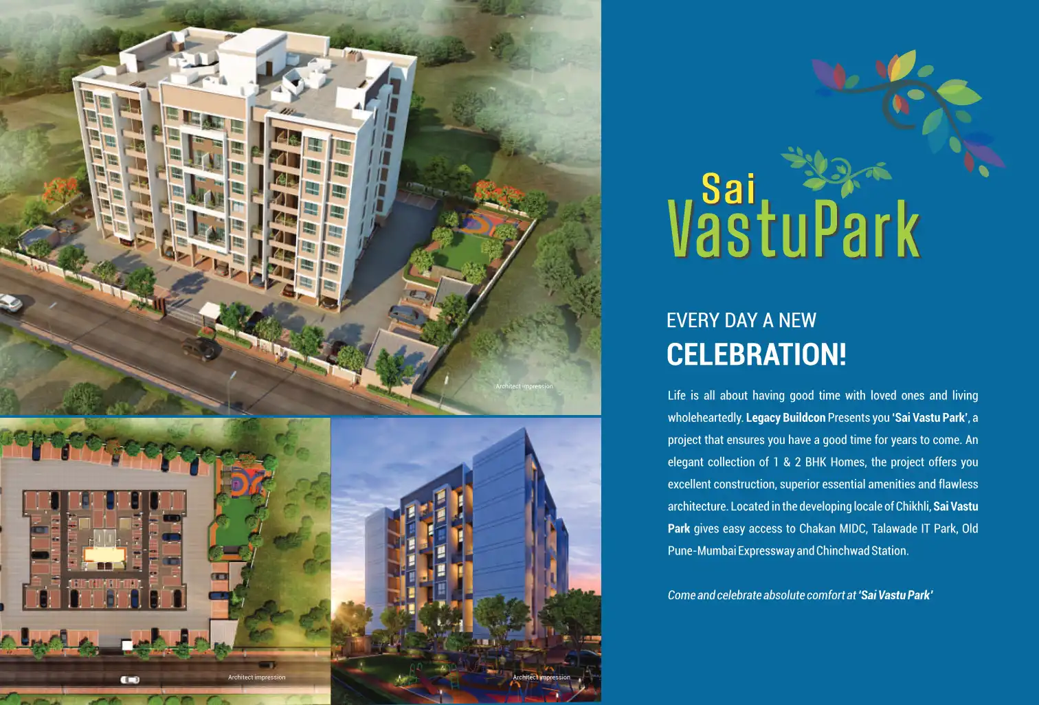 An elegant collection of 1 & 2 BHK Homes, the project offers you excellent construction, superior essential amenities and flawless architecture. Located in the developing locale of Chikhli, Sai Vastu Park gives easy access to Chakan MIDC, Talawade IT...