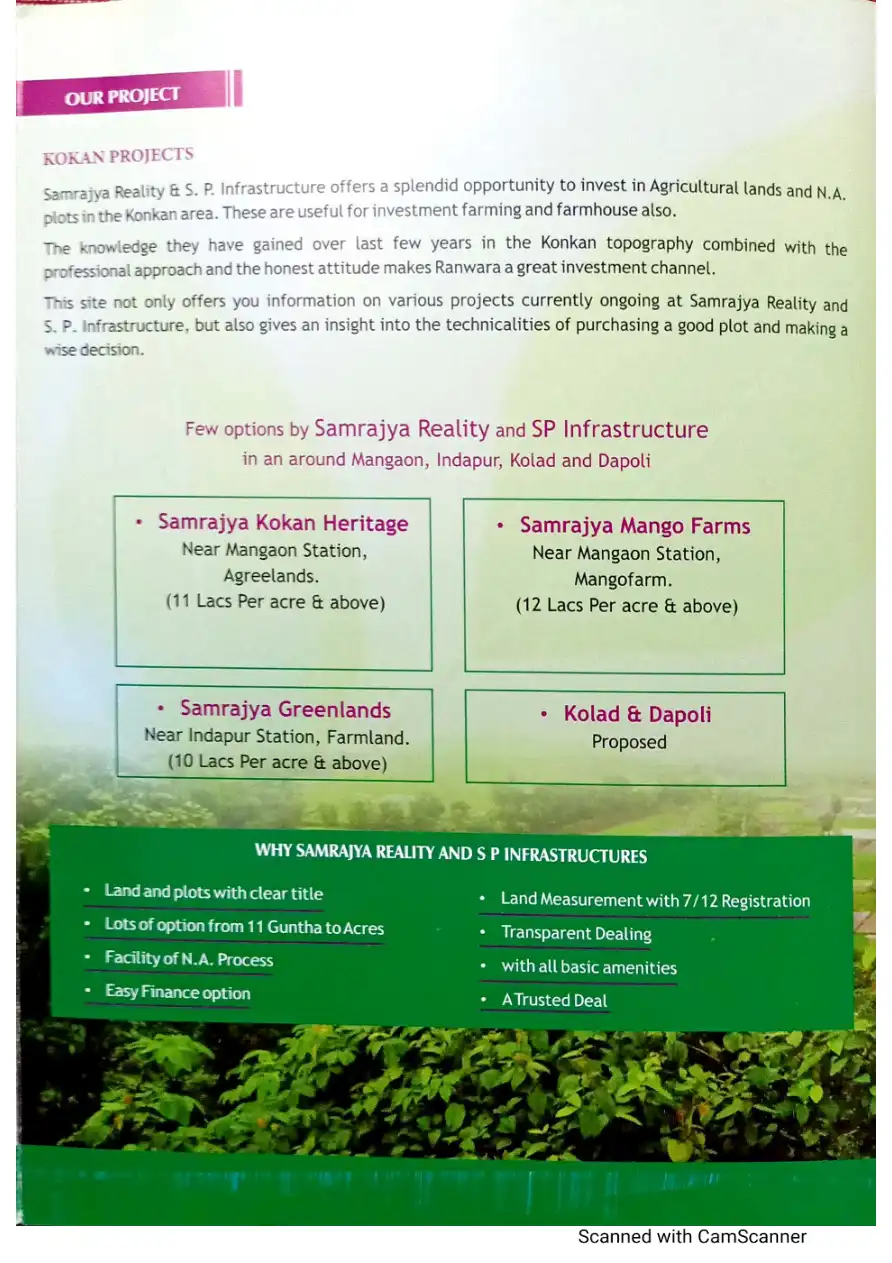 Agricultural lands and N.A. plots in the Konkan area. These are useful for investment farming and farmhouse also.