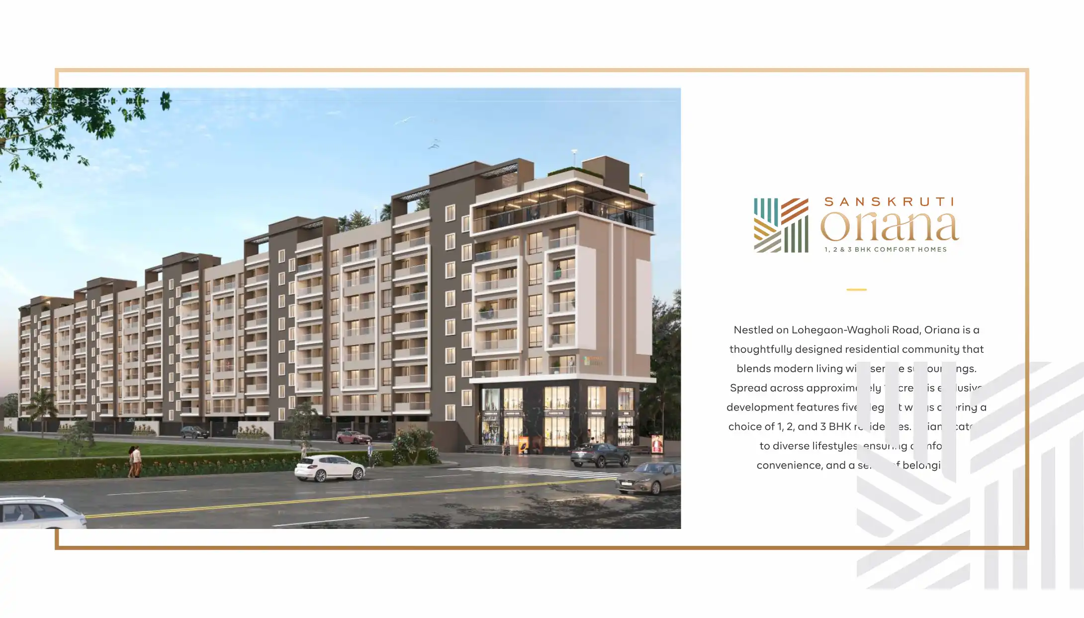 Nestled on Lohegaon-Wagholi Road, Oriana is a thoughtfully designed residential community that blends modern living with serene surroundings. Spread across approximately 1 acre this exclusive development features five elegant wings offering a choice ...