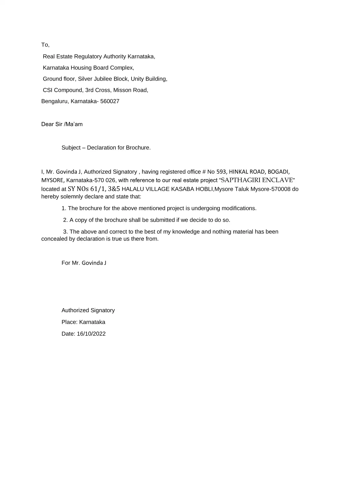 by Mr. Govinda J