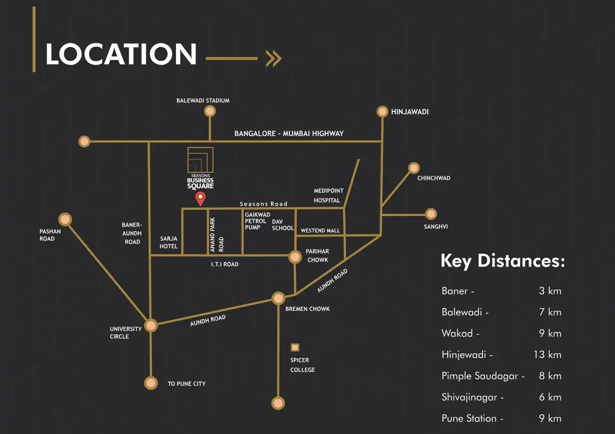 Aundh is a prominent, upscale locality situated in the northwestern part of Pune, Maharashtra. It is widely recognized for its harmonious blend of residential tranquility and commercial vibrancy. Aundh offers a high quality of life, characterized by excellent infrastructure, well-maintained green spaces, and a strategic location that makes it a highly sought-after area for living and business.