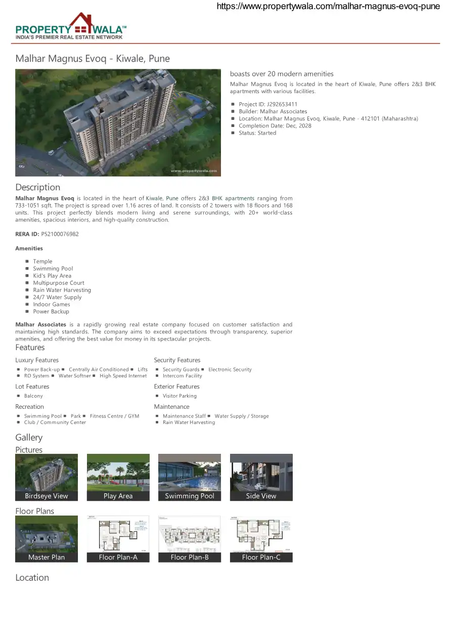 Malhar Magnus Evoq is located in the heart of Kiwale, Pune offers 2&3 BHK apartments ranging from 733-1051 sqft. The project is spread over 1.16 acres of land. It consists of 2 towers with 18 floors and 168 units. This project perfectly blends modern...