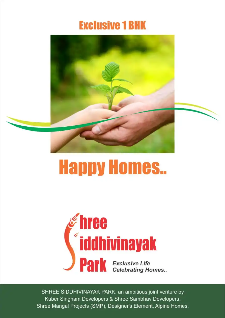 Shree Siddhivinayak Park, an ambitious joint venture by Kuber Singham Developers & Shree Sambhav Developers, Shree Mangal Projects (SMP), Designer's Element, Alpine Homes.