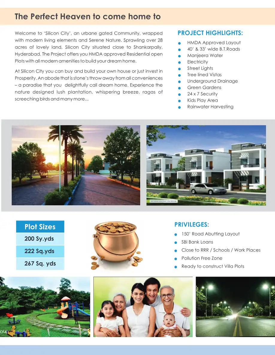 Silicon City offers HMDA approved Residential open Plots with all modern amenities to build your dream home. It is an urbane gated Community, wrapped with modern living elements and Serene Nature. Sprawling over 28 acres of lovely land, Silicon City ...