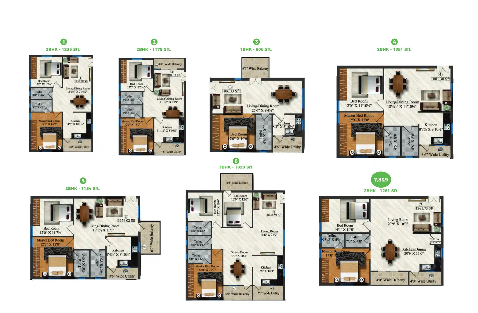 - 806 - 1828 sq.ft.
