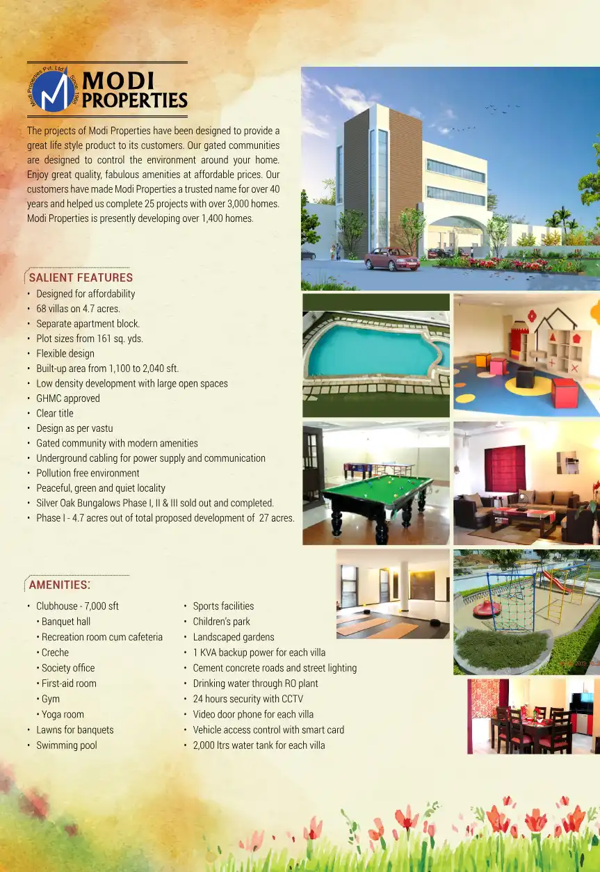 The projects of Modi Properties have been designed to provide a great life style product to its customers. Our gated communities are designed to control the environment around your home. Enjoy great quality, fabulous amenities at affordable prices.