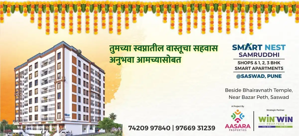 Saswad is an emerging real estate destination, offering diverse investment opportunities in residential apartments, plots, and commercial spaces. It attracts buyers seeking more affordable options compared to central Pune, with potential for appreciation due to ongoing infrastructure development. Properties typically range from 1 BHK to 3 BHK units, catering to various budget segments.