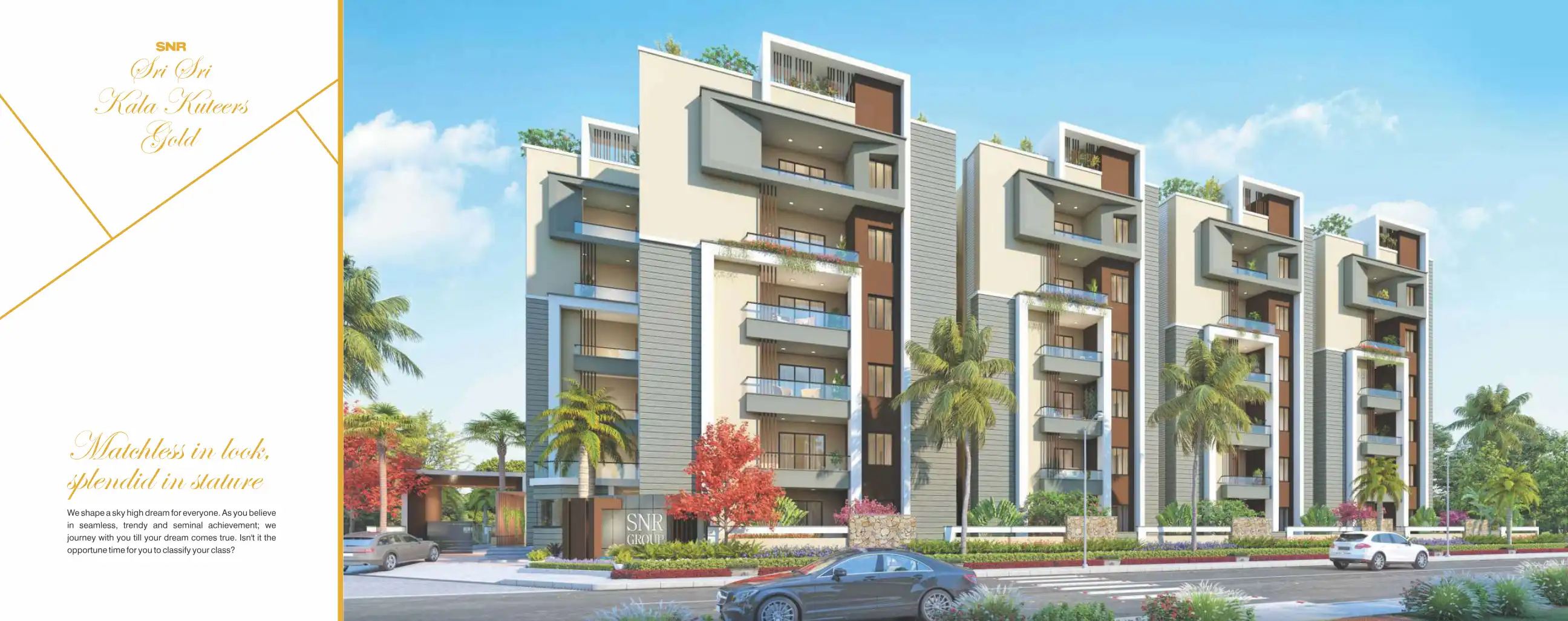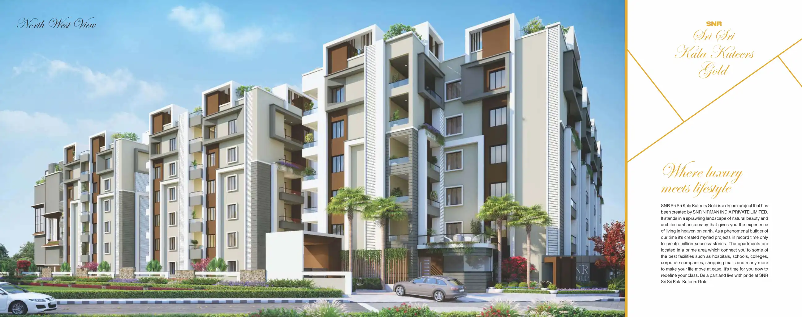 SNR Sri Sri Kala Kuteers Gold is a dream project that has been created by SNR NIRMAN INDIA PRIVATE LIMITED.It stands in a sprawling landscape of natural beauty and architectural aristocracy that gives you the experience of living in heaven on earth.