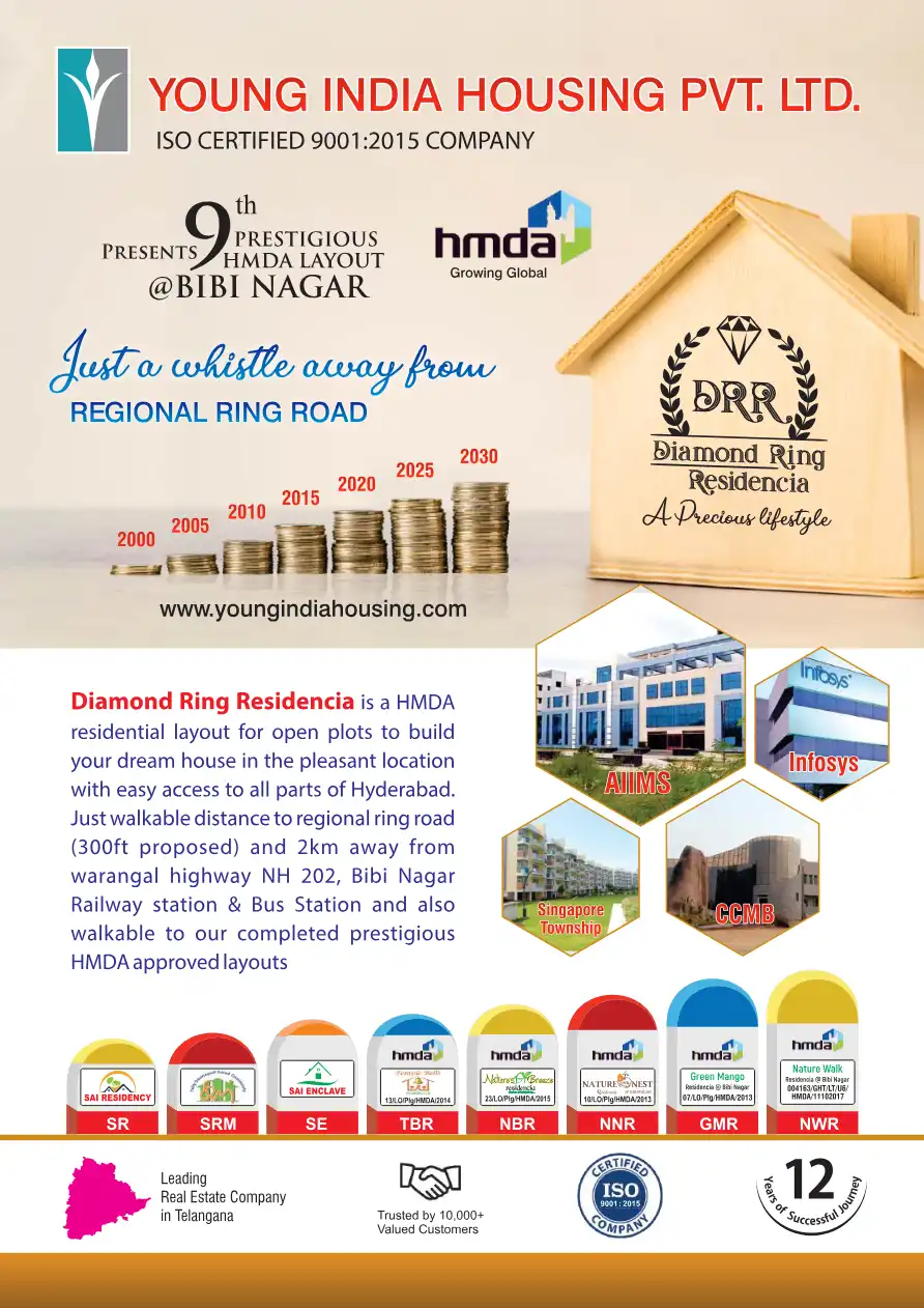 HMDA residential layout for open plots to build your dream house in the pleasant location with easy access to all parts of Hyderabad. Just walkable distance to regional ring road (300ft proposed) and 2km away from warangal highway NH 202, Bibi Nagar ...
