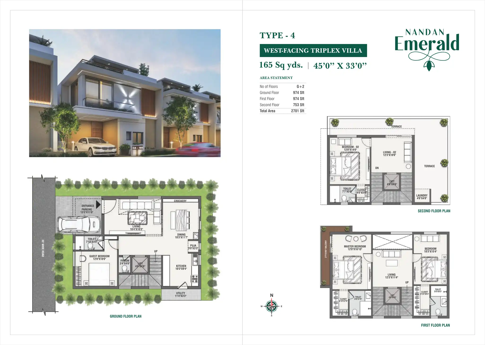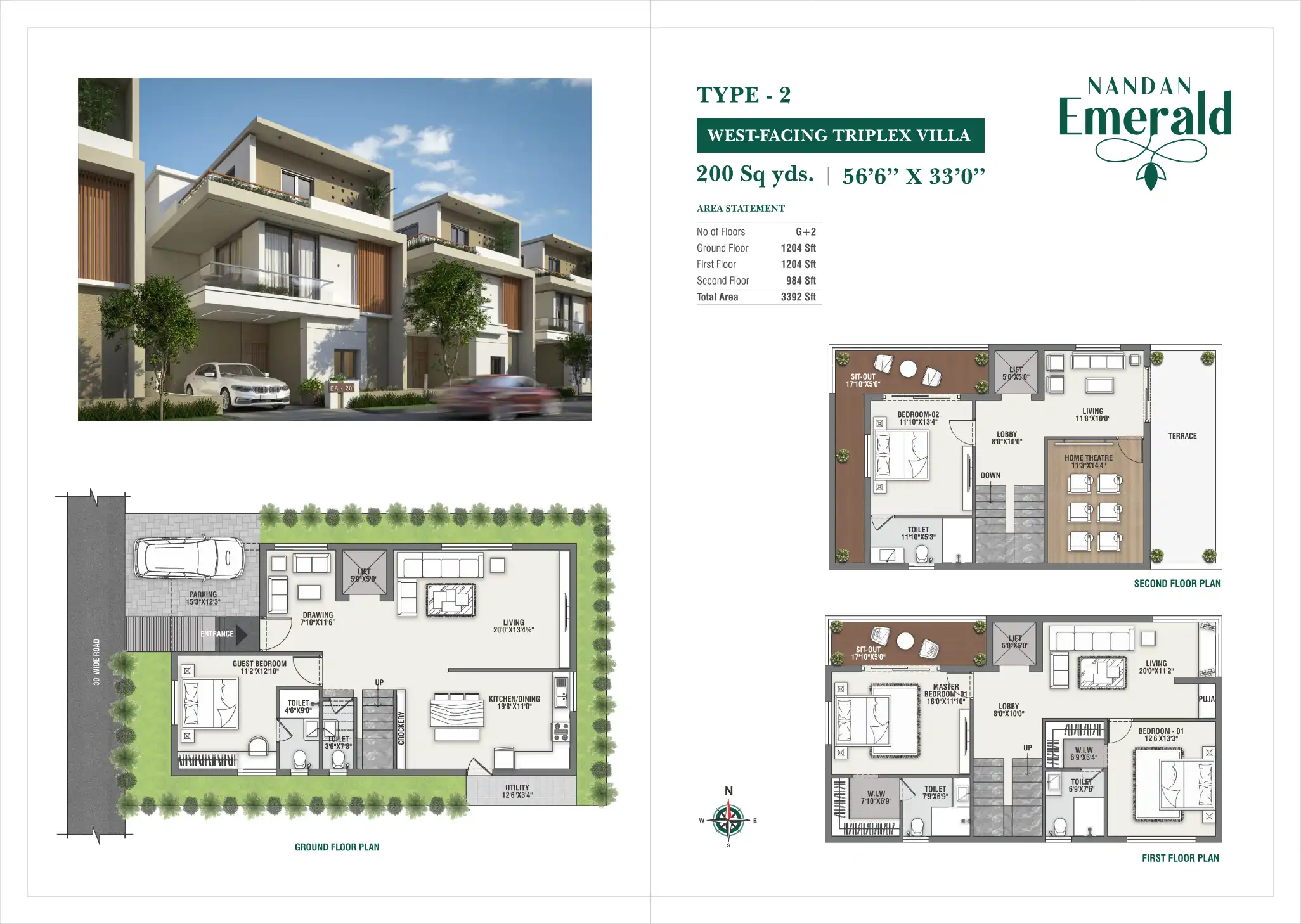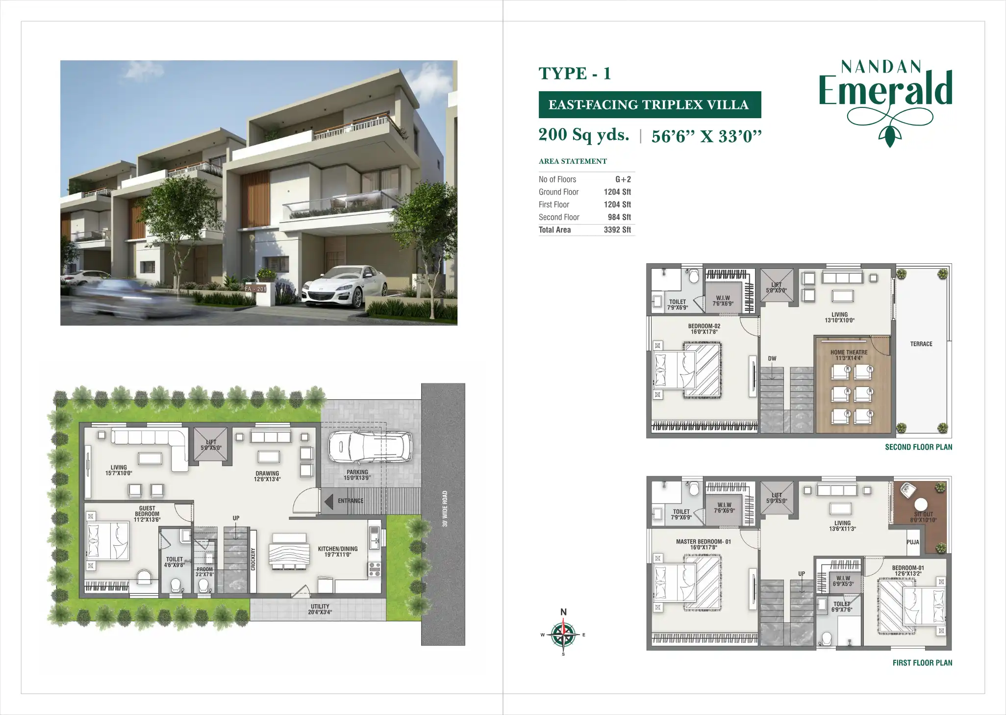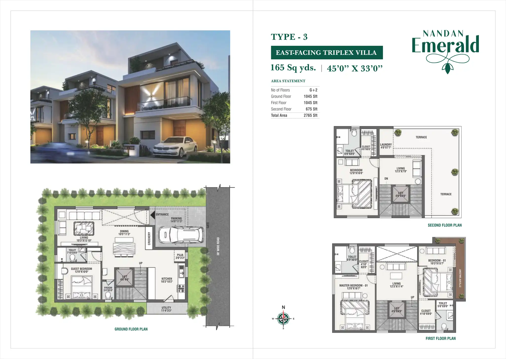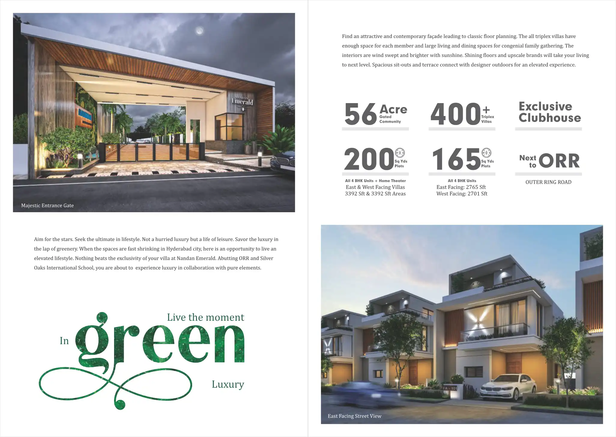 Luxury triplex villas with modern amenities and greenery.