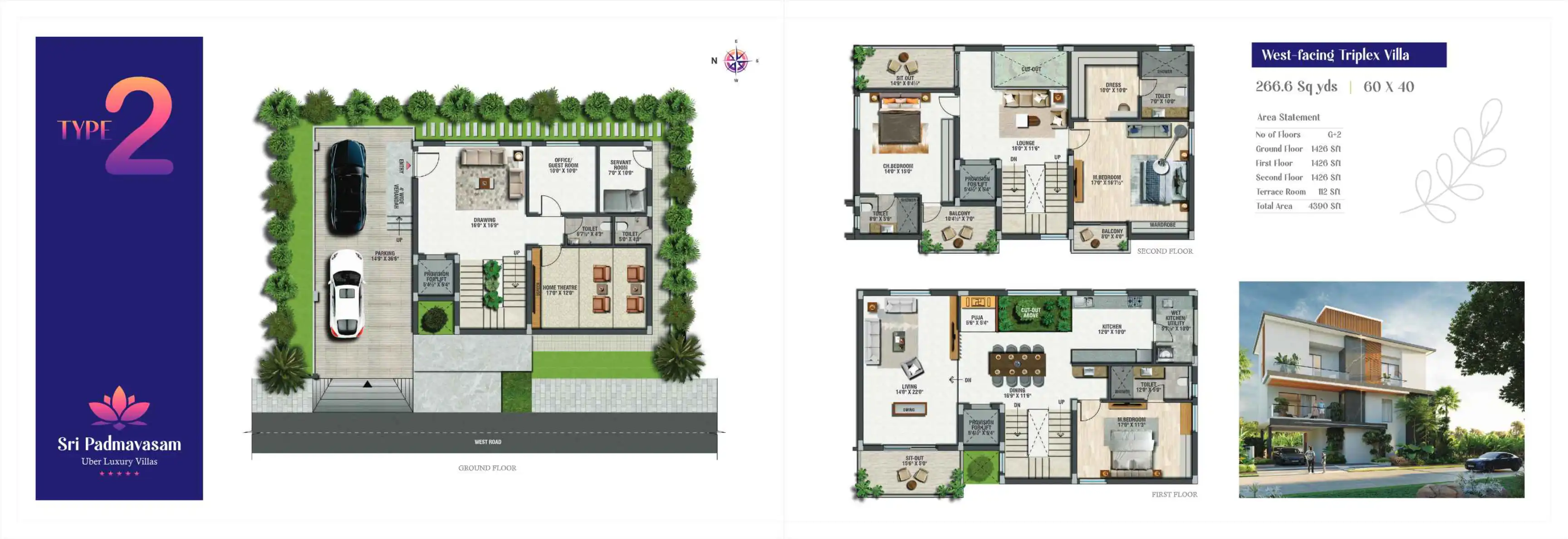 Your villa at Sri Padmavasam is a statement of class designed for only 70 privileged families. Here, the indoor and outdoor spaces blend seamlessly, soaking them in natural light and breeze.