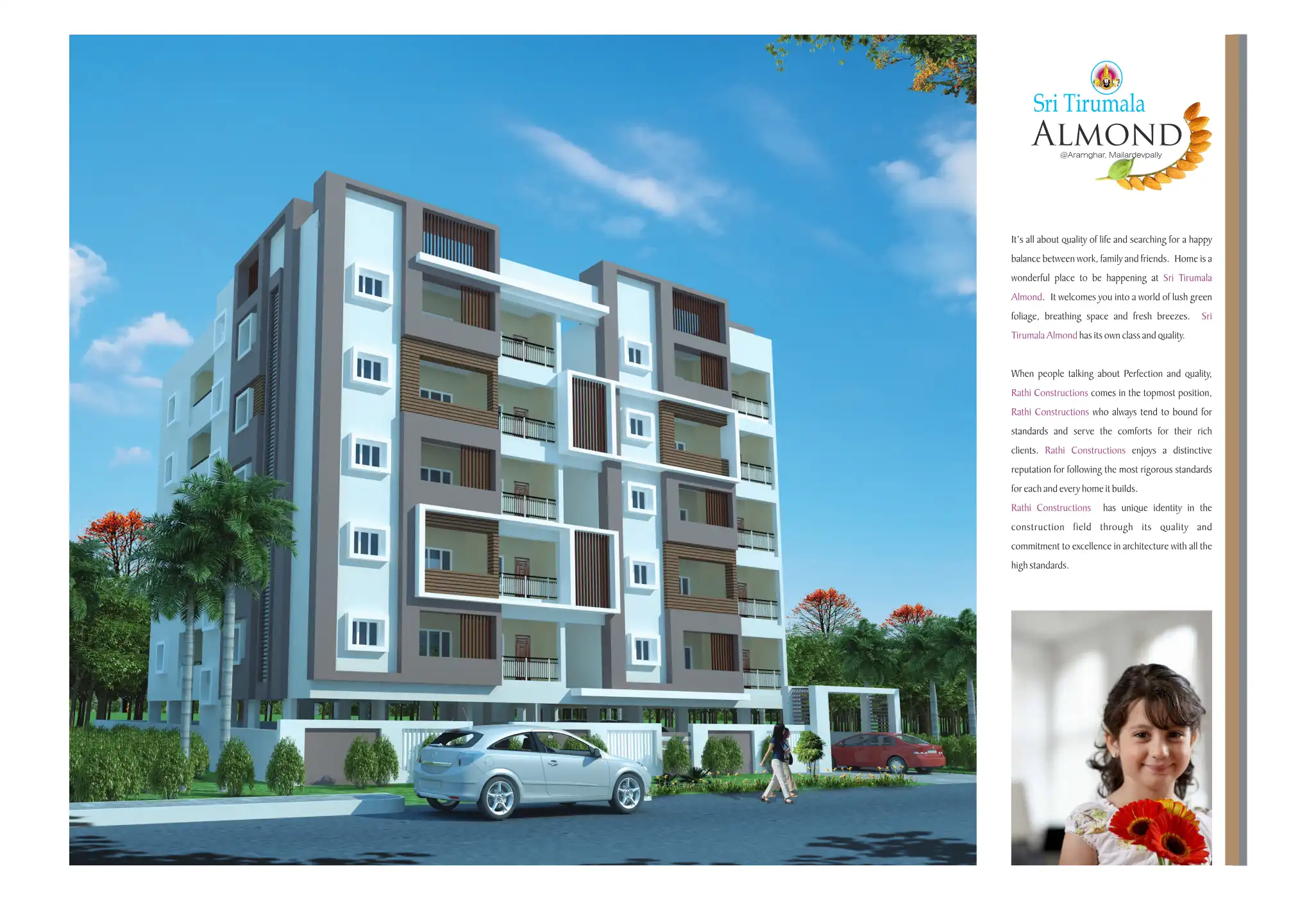 Sri Tirumala Almond welcomes you into a world of lush green foliage, breathing space and fresh breezes. Sri Tirumala Almond has its own class and quality.