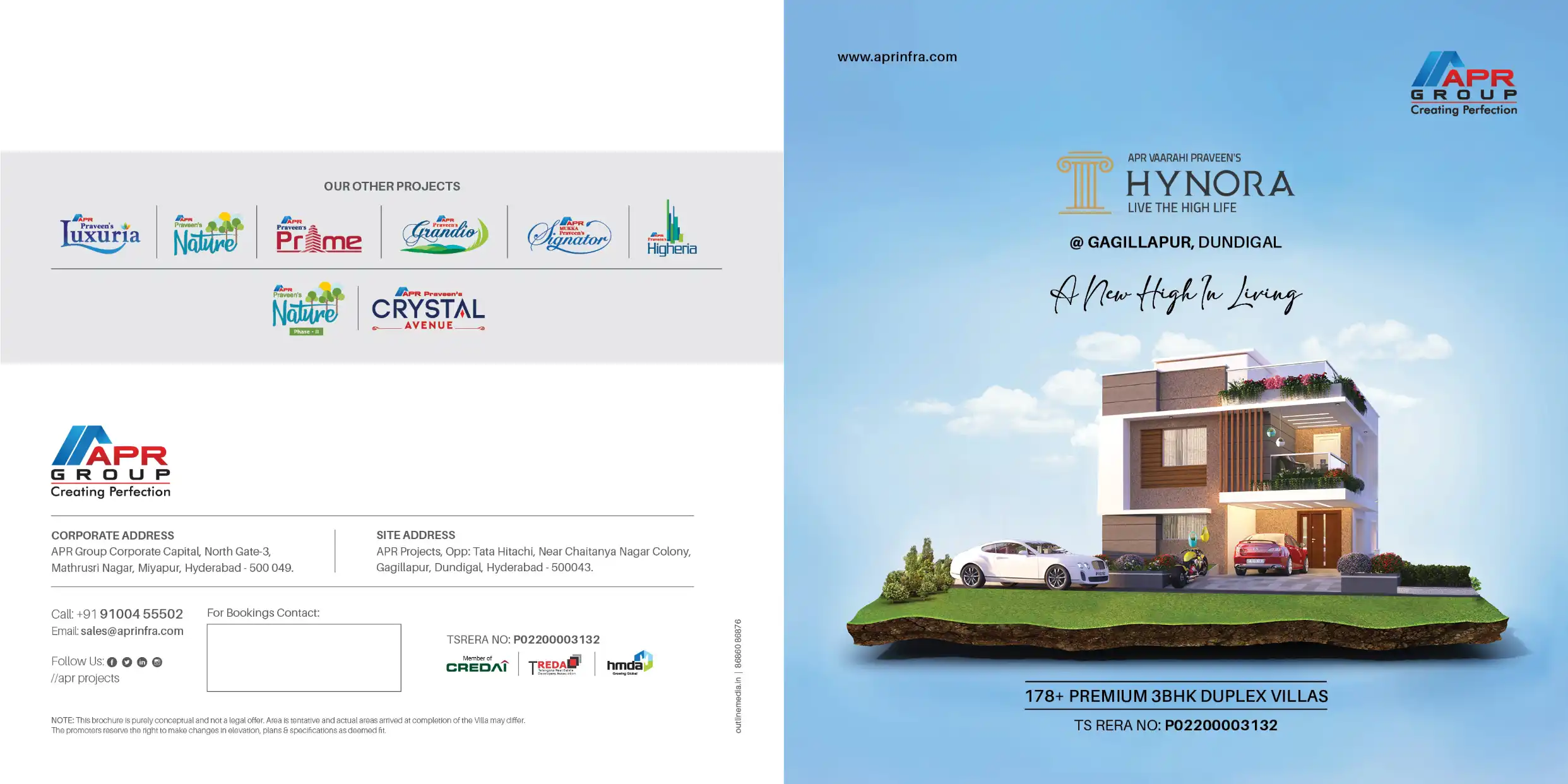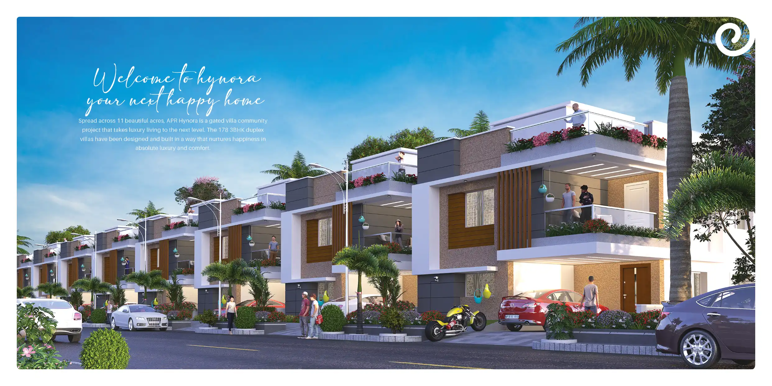 APR Hynora is a gated villa community that takes luxury living to the next level. The 178 3BHK duplex villas have been designed and built in a way that nurtures happiness in absolute luxury and comfort.