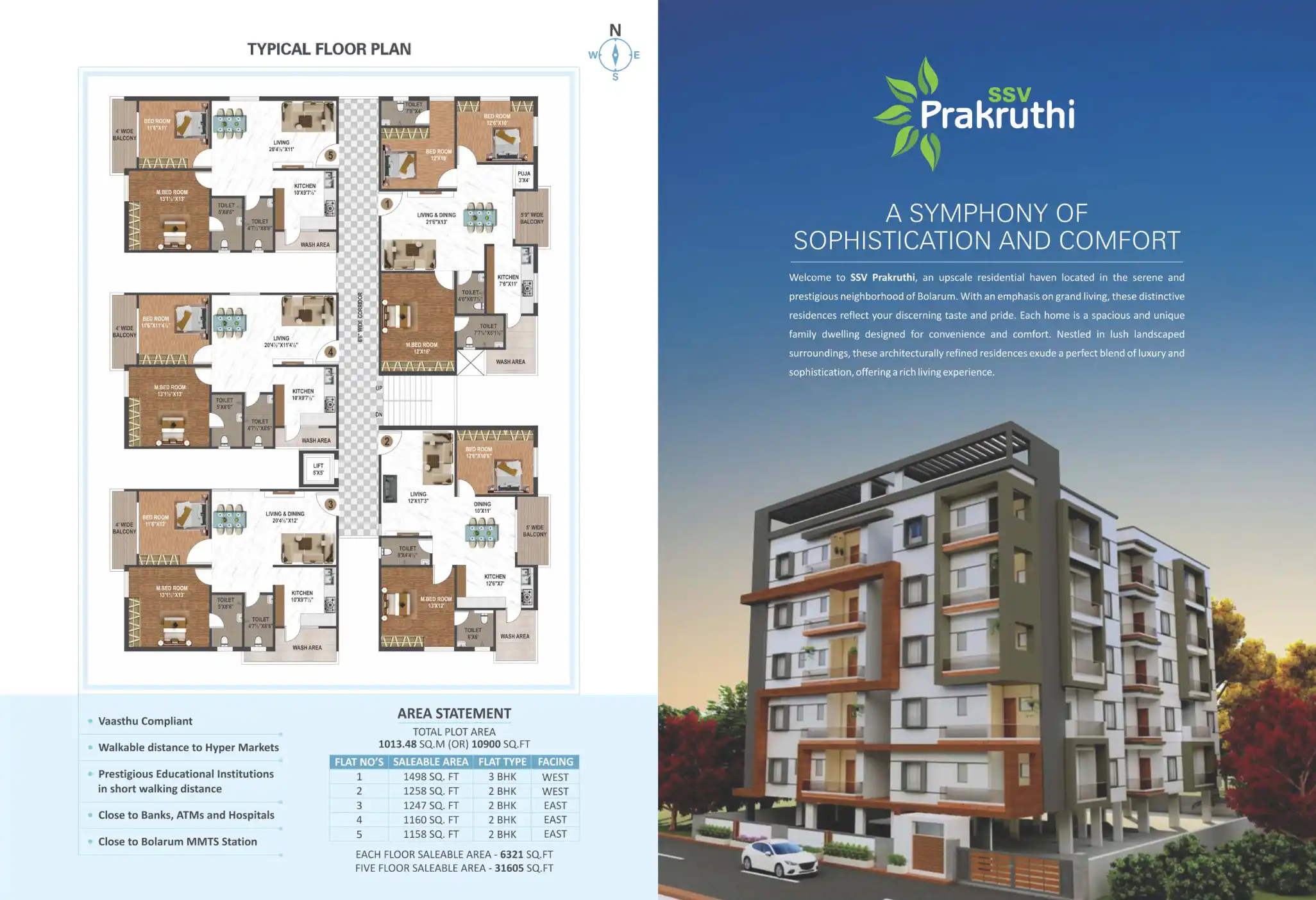 SSV Builders, promoters with a visionary approach, present SSV PRAKRUTHI, showcasing their commitment to intelligent space utilization and innovative design. This project infuses the Group's signature luxury and exemplifies optimal space planning, hi...