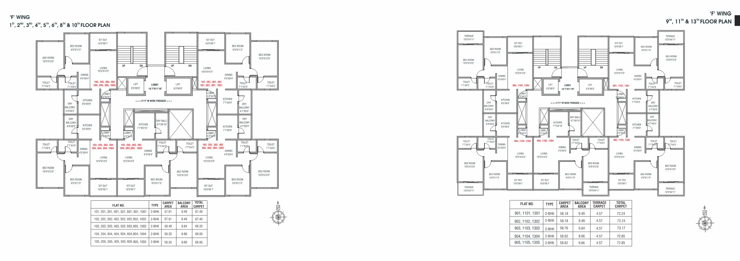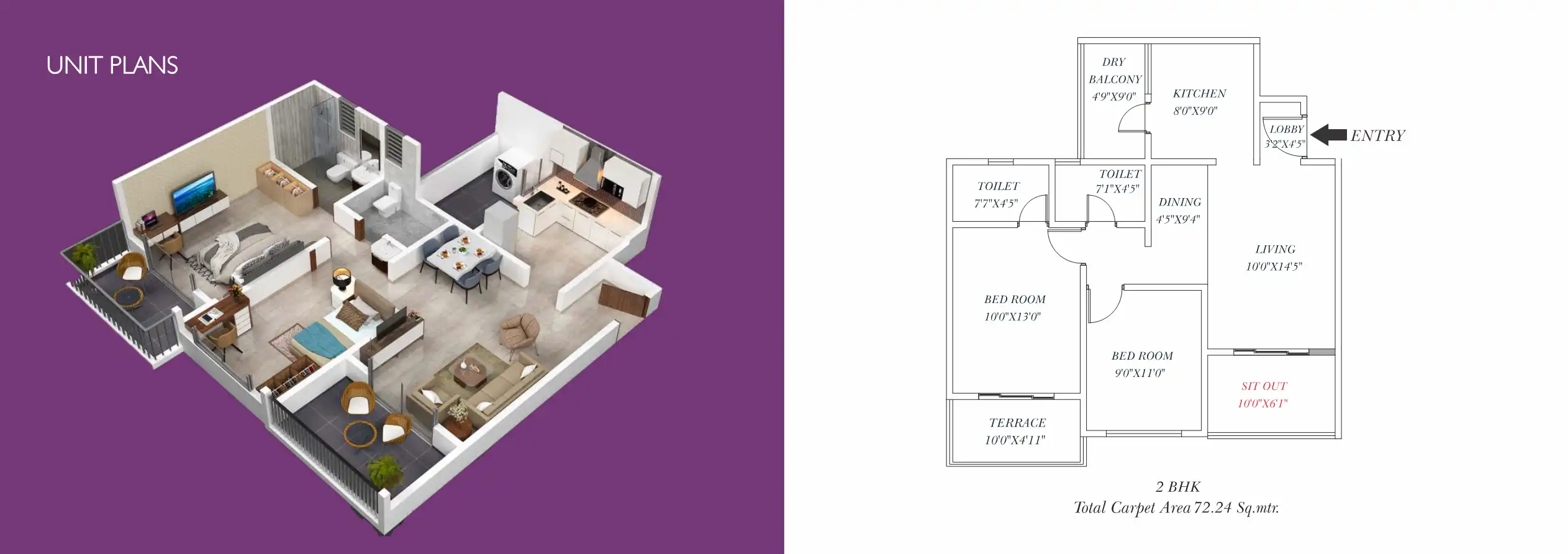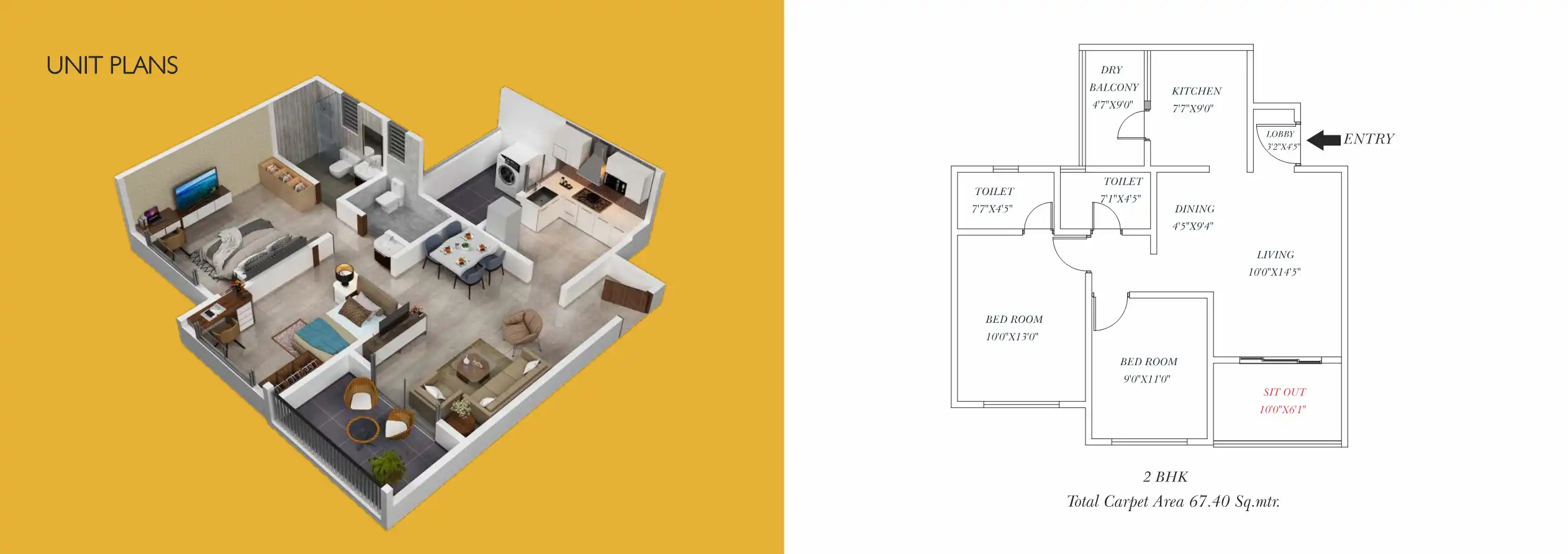 - 67.4 - 72.24 sq.ft.