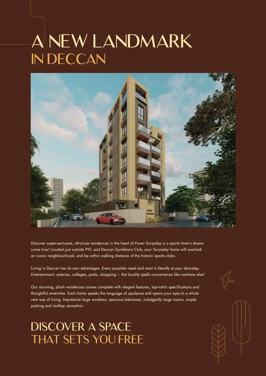 Discover super-exclusive, ultra-luxe residences in the heart of Pune! Suryoday is a sports lover's dream come true! Located just outside PYC and Deccan Gymkhana Club, your Suryoday home will overlook an iconic neighbourhood, and be within walking dis...