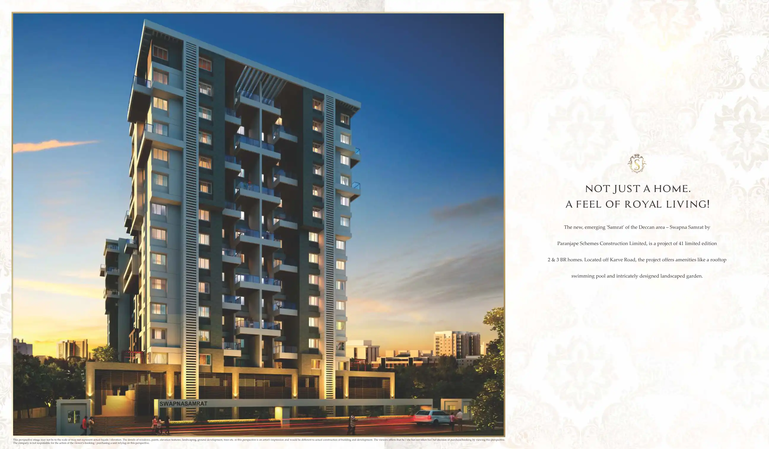 The new, emerging 'Samrat' of the Deccan area - Swapna Samrat by Paranjape Schemes Construction Limited, is a project of 41 limited edition 2 & 3 BR homes. Located off Karve Road, the project offers amenities like a rooftop swimming pool and intricat...