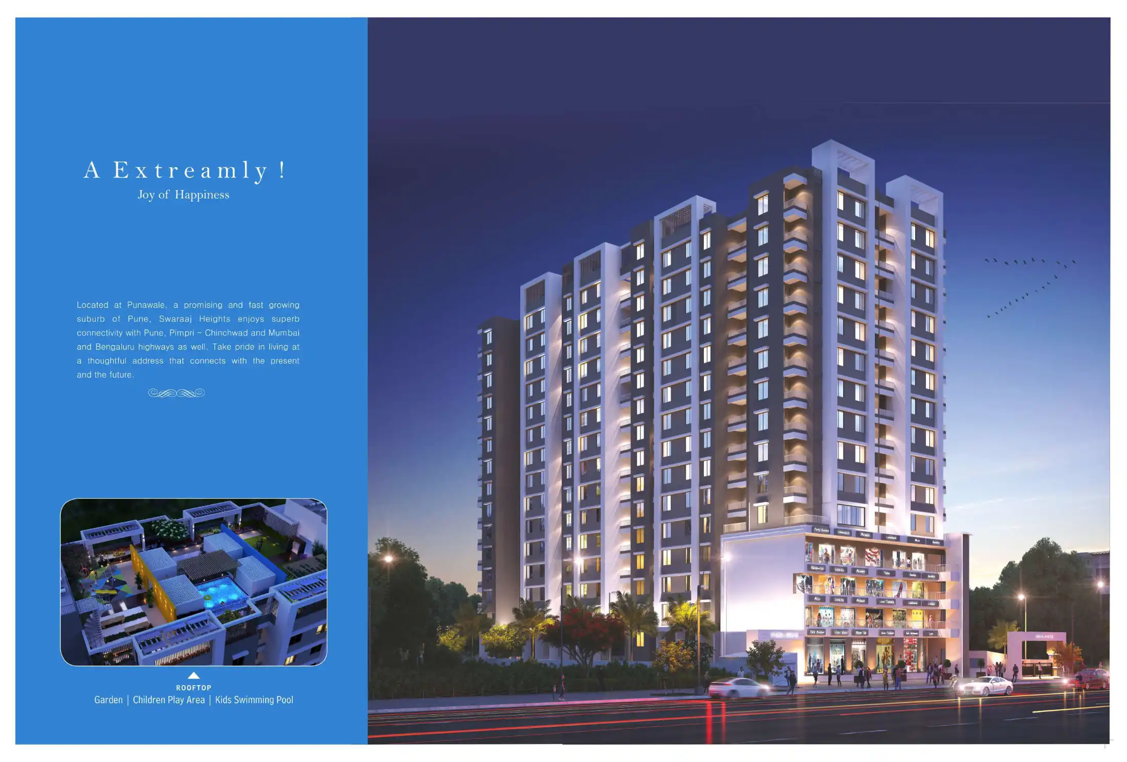 Welcome to Swaraaj Heights at Punawale, where the connectivity with every need of daily life is wonderful and the standards of indoor living are simply delightful. Swaraaj Heights has1, 2 and 3 BHK Homes that Comfortable layout and the right amount o...