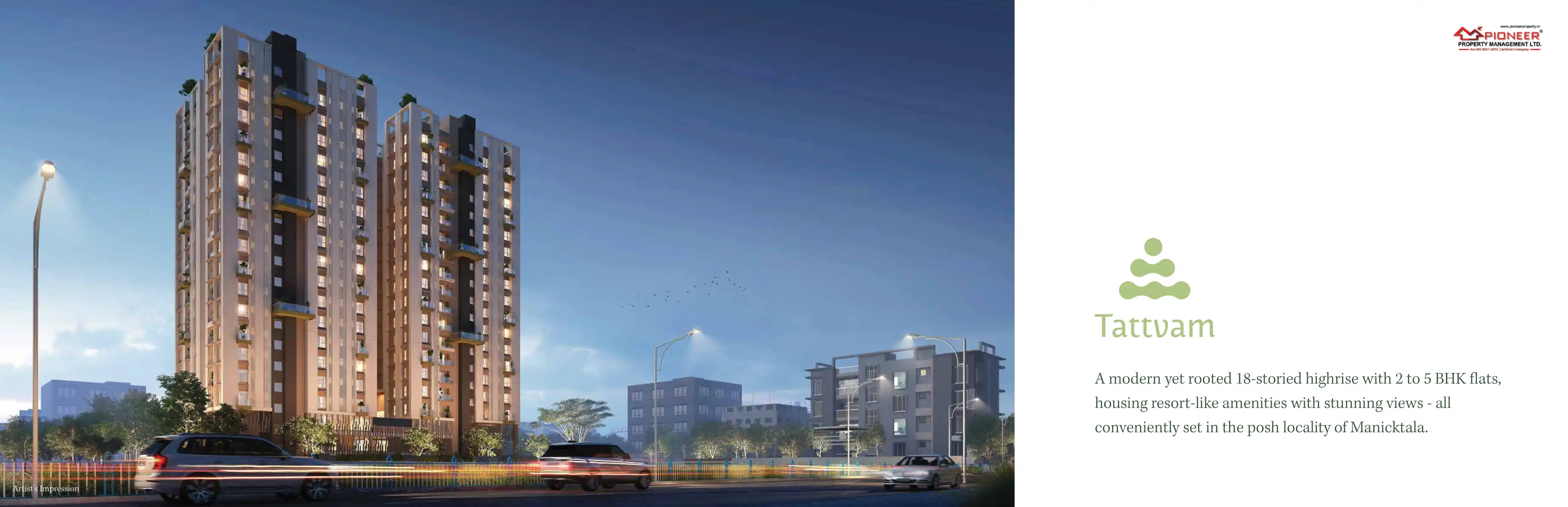 A modern yet rooted 18-storied highrise with 2 to 5 BHK flats, housing resort-like amenities with stunning views - all conveniently set in the posh locality of Manicktala.