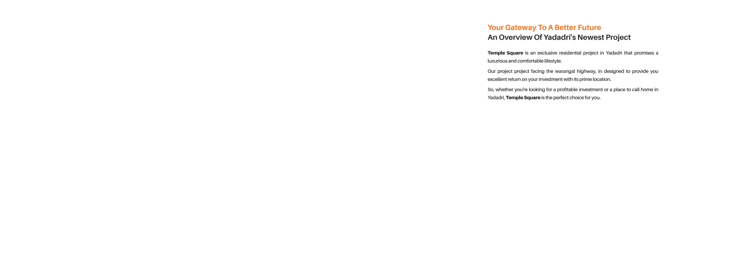 Temple Square is an exclusive residential project in Yadadri that promises a luxurious and comfortable lifestyle.