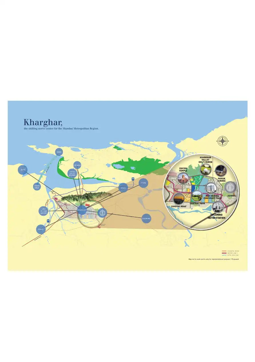 Kharghar-Valley-Shilp boasts excellent connectivity. It is well-served by the Navi Mumbai Metro, with Amandoot Metro Station in close proximity, providing seamless travel. Major roads and highways connect it to the rest of Navi Mumbai and Mumbai, making commuting convenient for residents. The area's strategic location ensures easy access to business hubs and recreational centers.