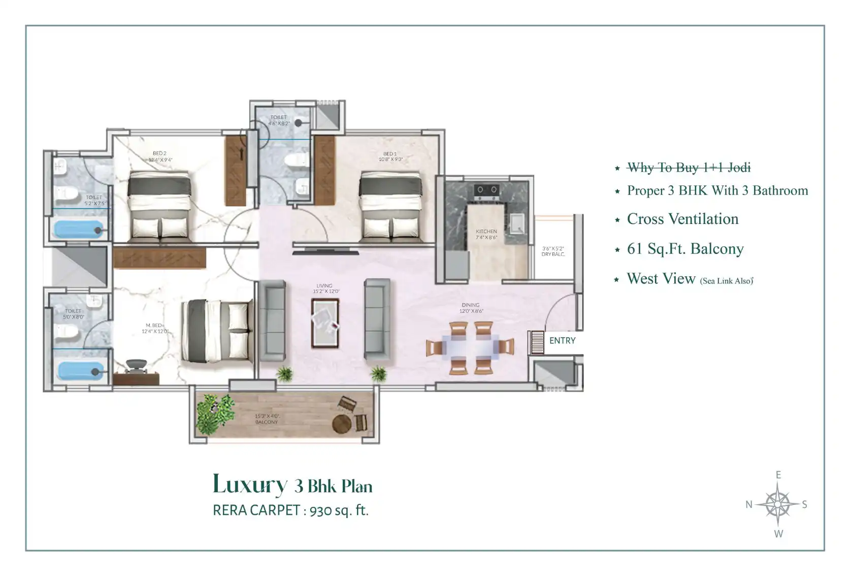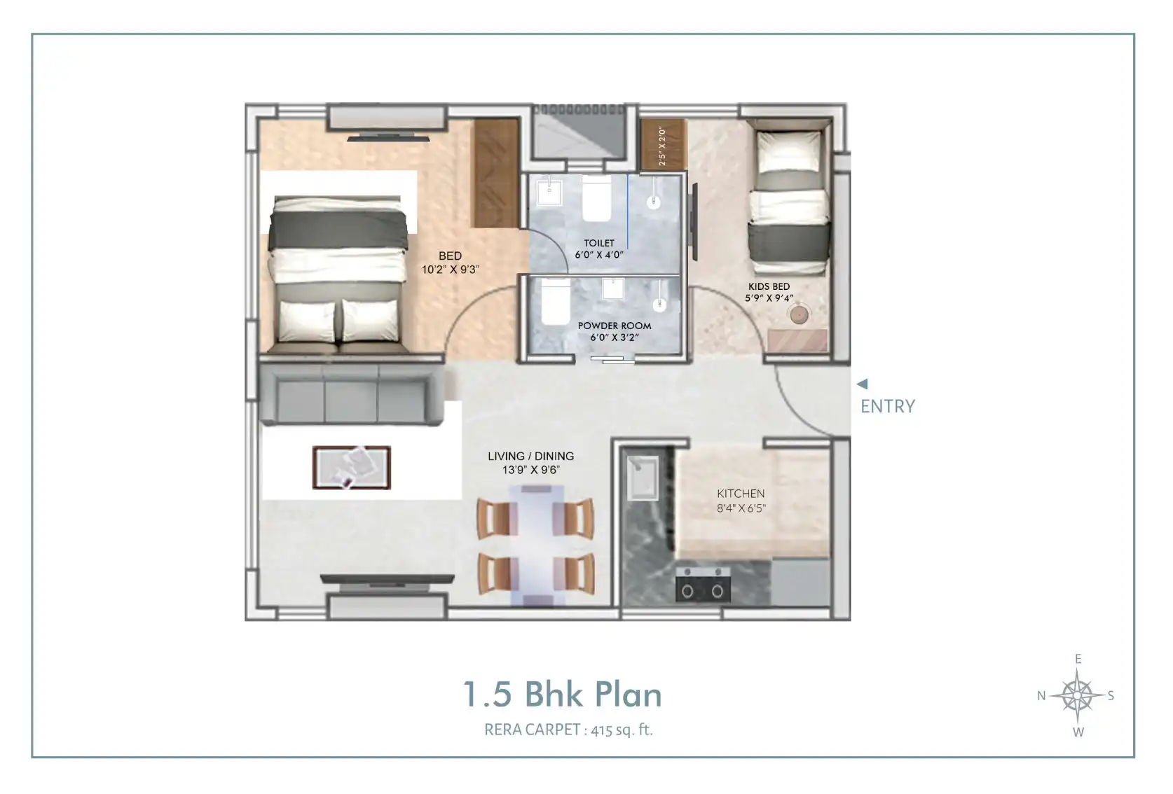 Well planned apartments of 1 1/2, 2 and 3 BHKs