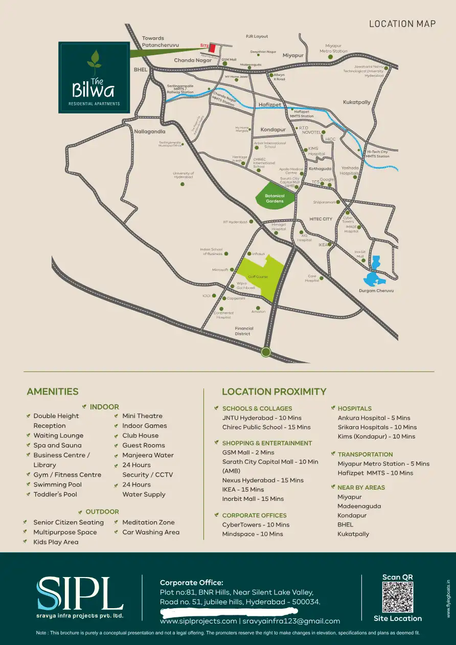 Miyapur is a prominent residential and commercial area situated in the north-western part of Hyderabad, Telangana. It is strategically located along the NH65 (Hyderabad-Mumbai Highway) and serves as a gateway to the city's IT and financial hubs like Hitech City and Gachibowli, making it a well-connected and sought-after locality.