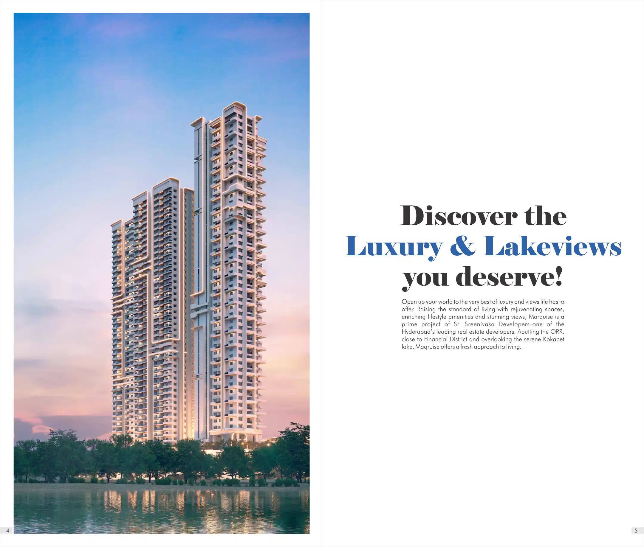 Welcome to Sri Sreenivas's latest marvel in Neopolis, Kokapet offering the the luxury and lakeviews you deserve, overlooking the serene Kokapet Lake and close to Financial District and IT Hub of Gachibowli.