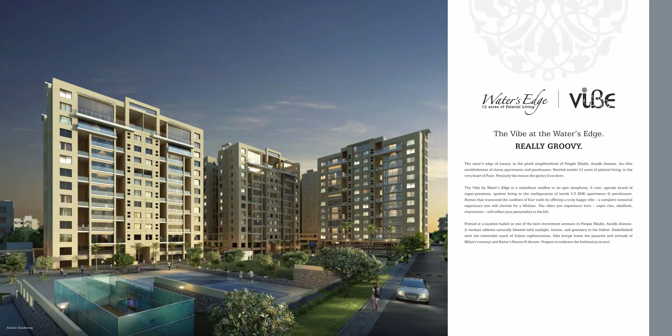 The Vibe by Water's Edge is a melodious medley to an epic symphony. A rare, upscale brand of super-premium, opulent living in the configuration of lavish 3.5 BHK apartments & penthouses.