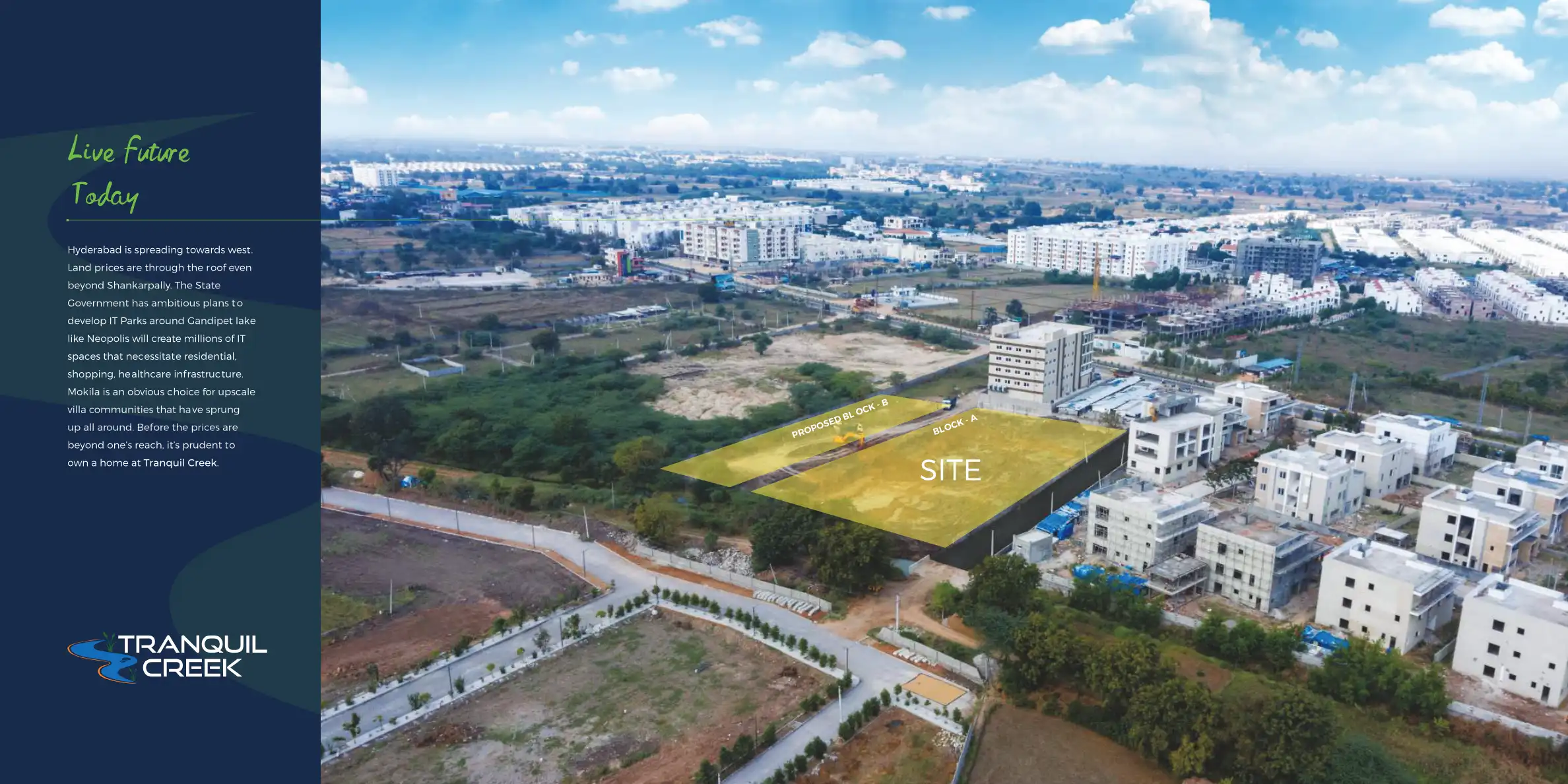 Mokila is poised for significant future growth, driven by its inclusion in the Hyderabad Metropolitan Region's development plans. Continued expansion of the ORR, upcoming residential and commercial projects, and increasing demand for plotted developments and villas suggest robust infrastructure enhancements and sustained real estate appreciation in the coming years.