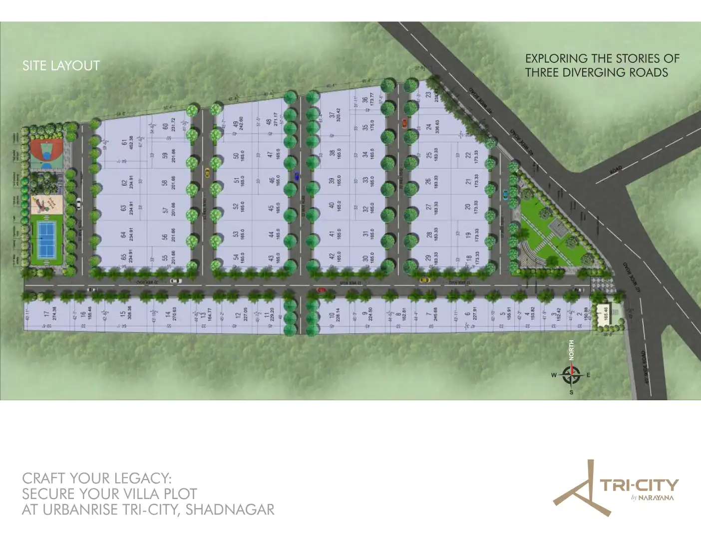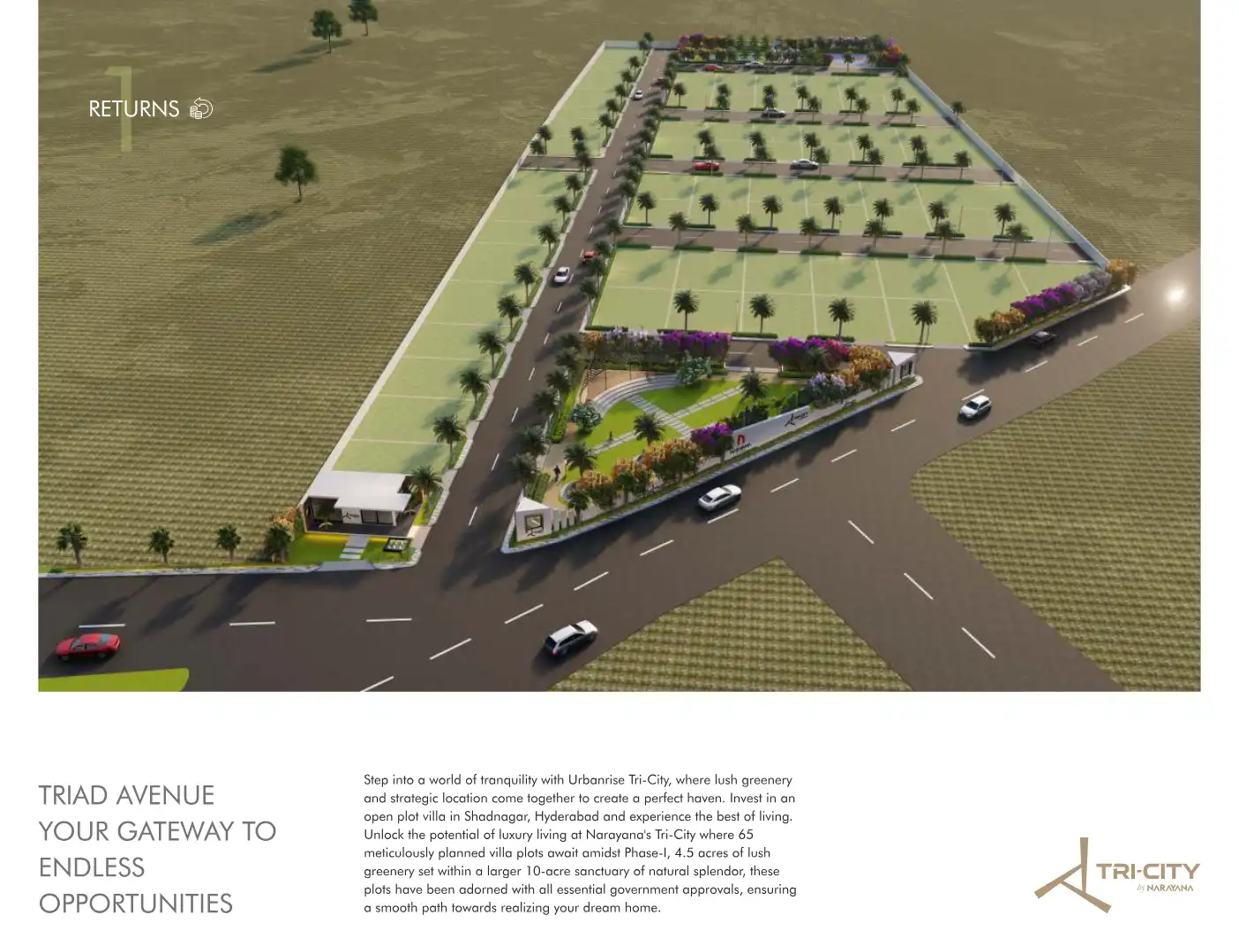 Step into a world of tranquility with Urbanrise Tri-City, where lush greenery and strategic location come together to create a perfect haven. Invest in an open plot villa in Shadnagar, Hyderabad and experience the best of living.