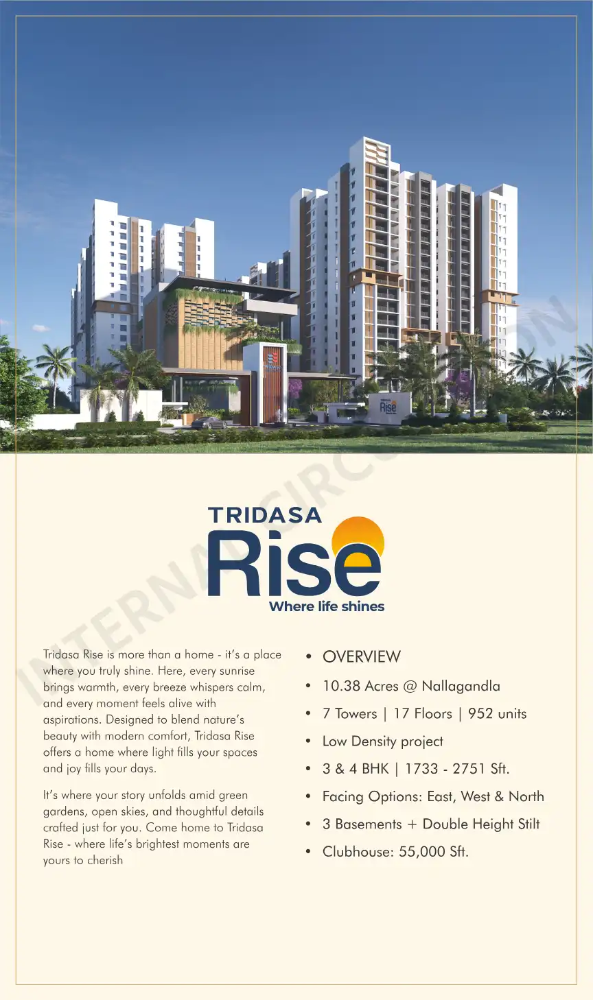 Tridasa Rise is more than a home - it's a place where you truly shine. Here, every sunrise brings warmth, every breeze whispers calm, and every moment feels alive with aspirations. Designed to blend nature's beauty with modern comfort, Tridasa Rise o...
