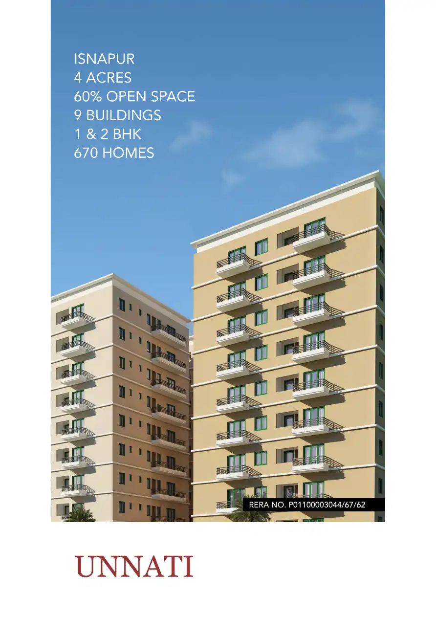 ISNAPUR 4 ACRES 60% OPEN SPACE 9 BUILDINGS 1 & 2 BHK 670 HOMES