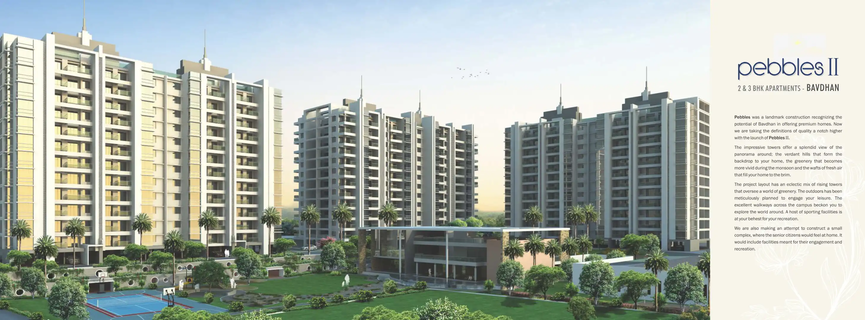Pebbles was a landmark construction recognizing the potential of Bavdhan in offering premium homes. Now we are taking the definitions of quality a notch higher with the launch of Pebbles II. The impressive towers offer a splendid view of the panorama...