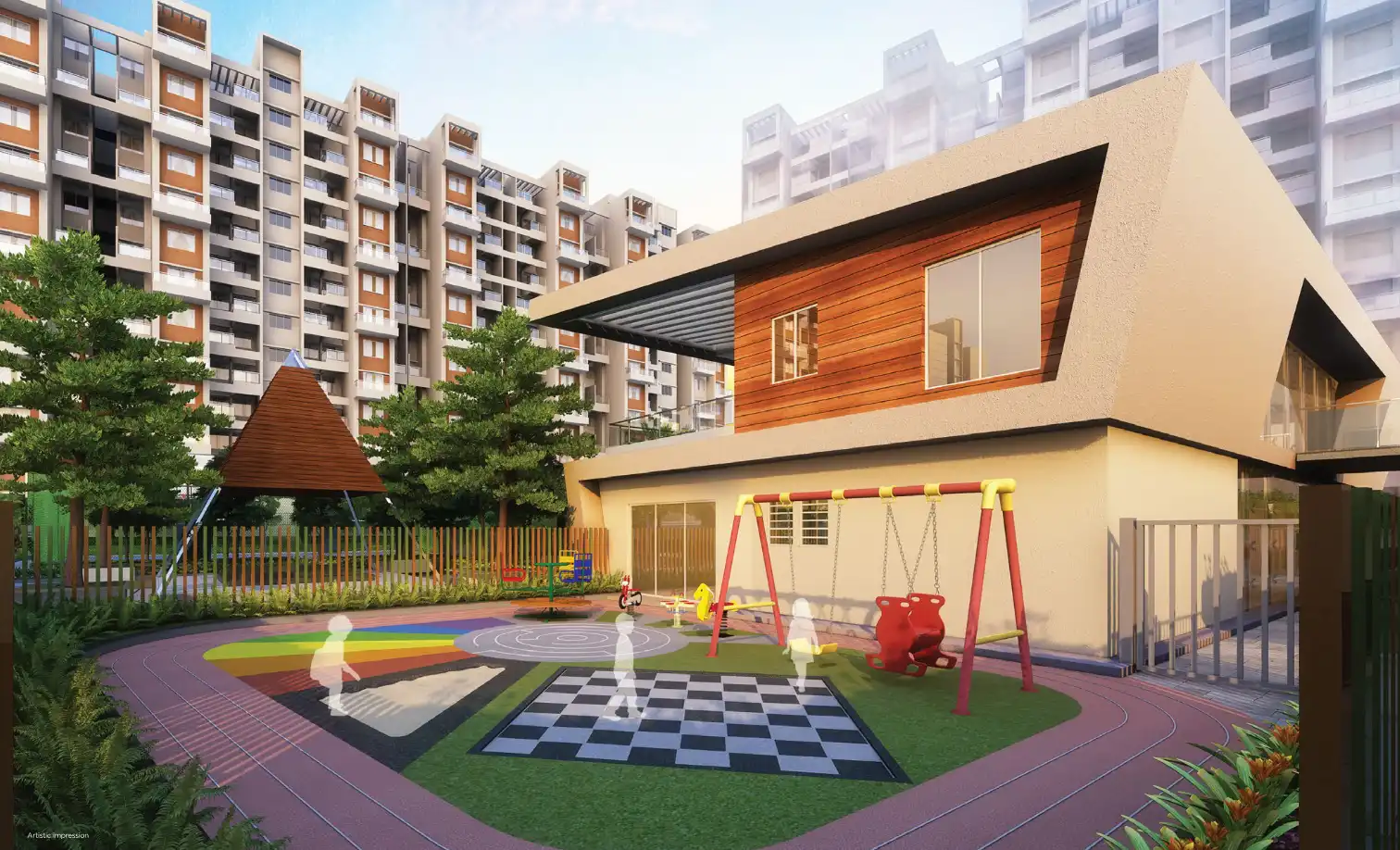 Sukhwani Skylines offers 2 BHK apartments in Wakad. It includes amenities such as a clubhouse, gymnasium, multipurpose hall, and a swimming pool.