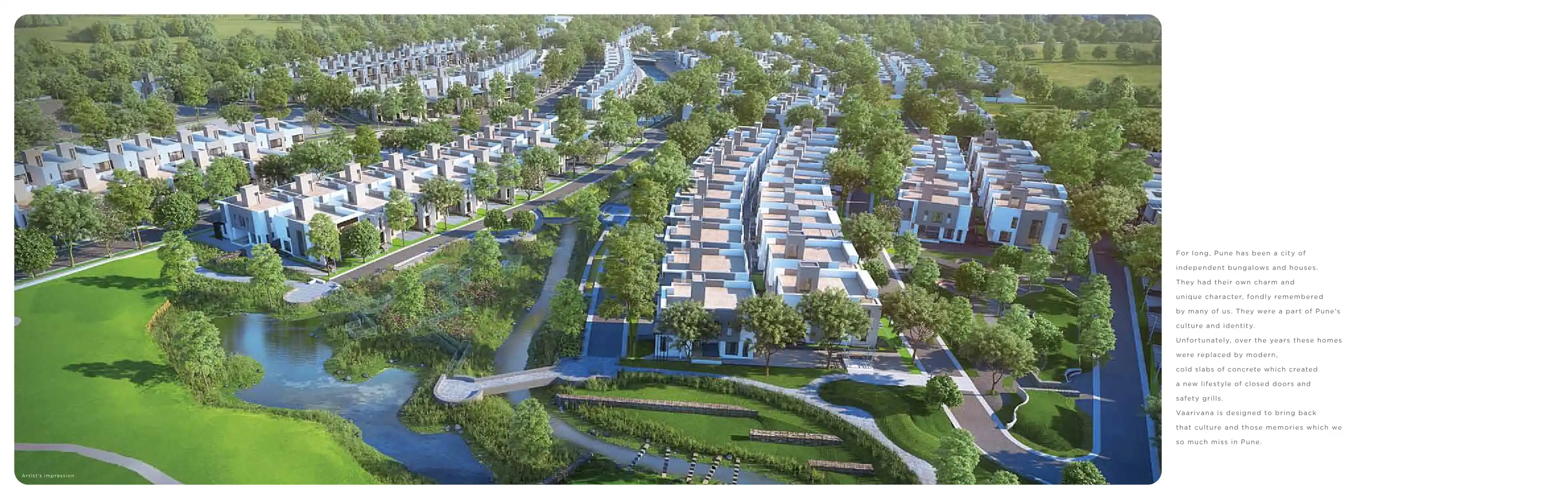 Vaarivana is designed to bring back that culture and those memories which we so much miss in Pune. It will feature only private villas and twin villas, sitting cosily below the tree tops. All homes come with their private plots giving you the freedom...