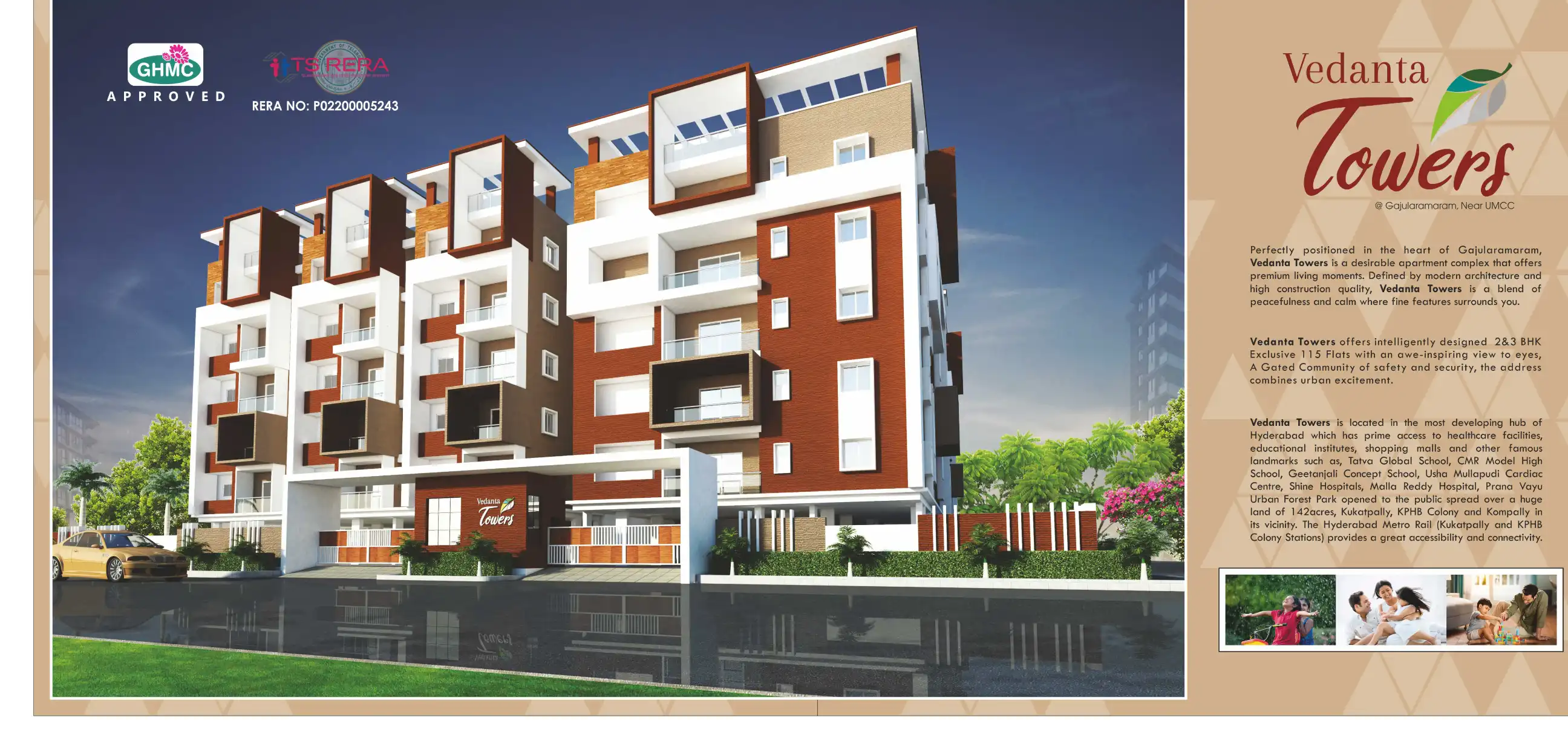 Perfectly positioned in the heart of Gajularamaram, Vedanta Towers is a desirable apartment complex that offers premium living moments. Defined by modern architecture and high construction quality, Vedanta Towers is a blend of peacefulness and calm w...