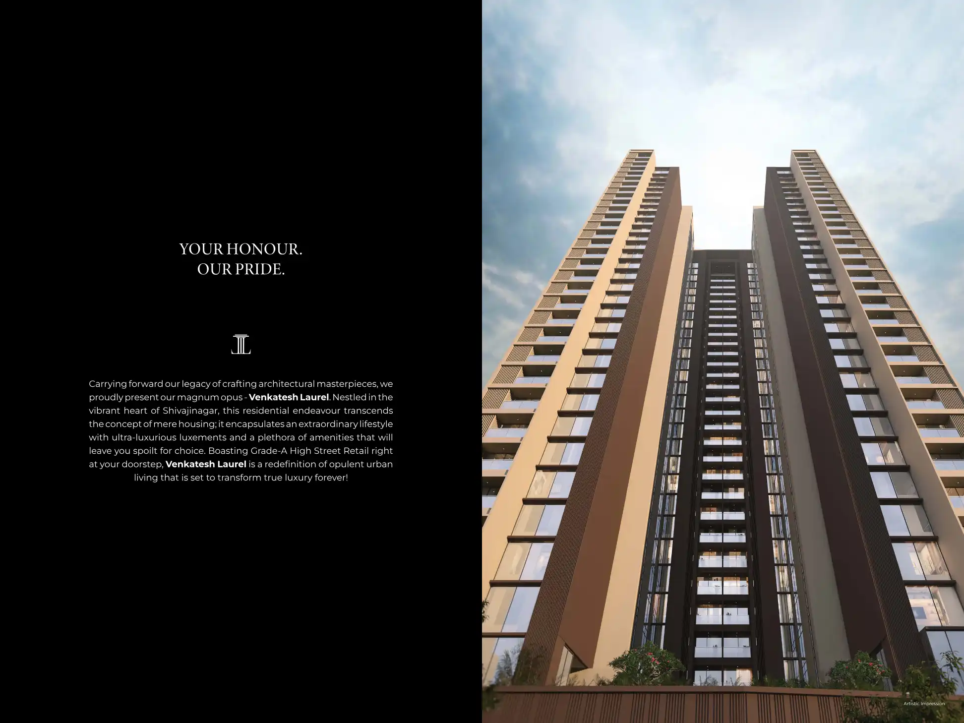 Venkatesh Laurel is a residential project located in the heart of Shivajinagar offering 4 & 3 BHK luxements with amenities and Grade-A High Street Retail.