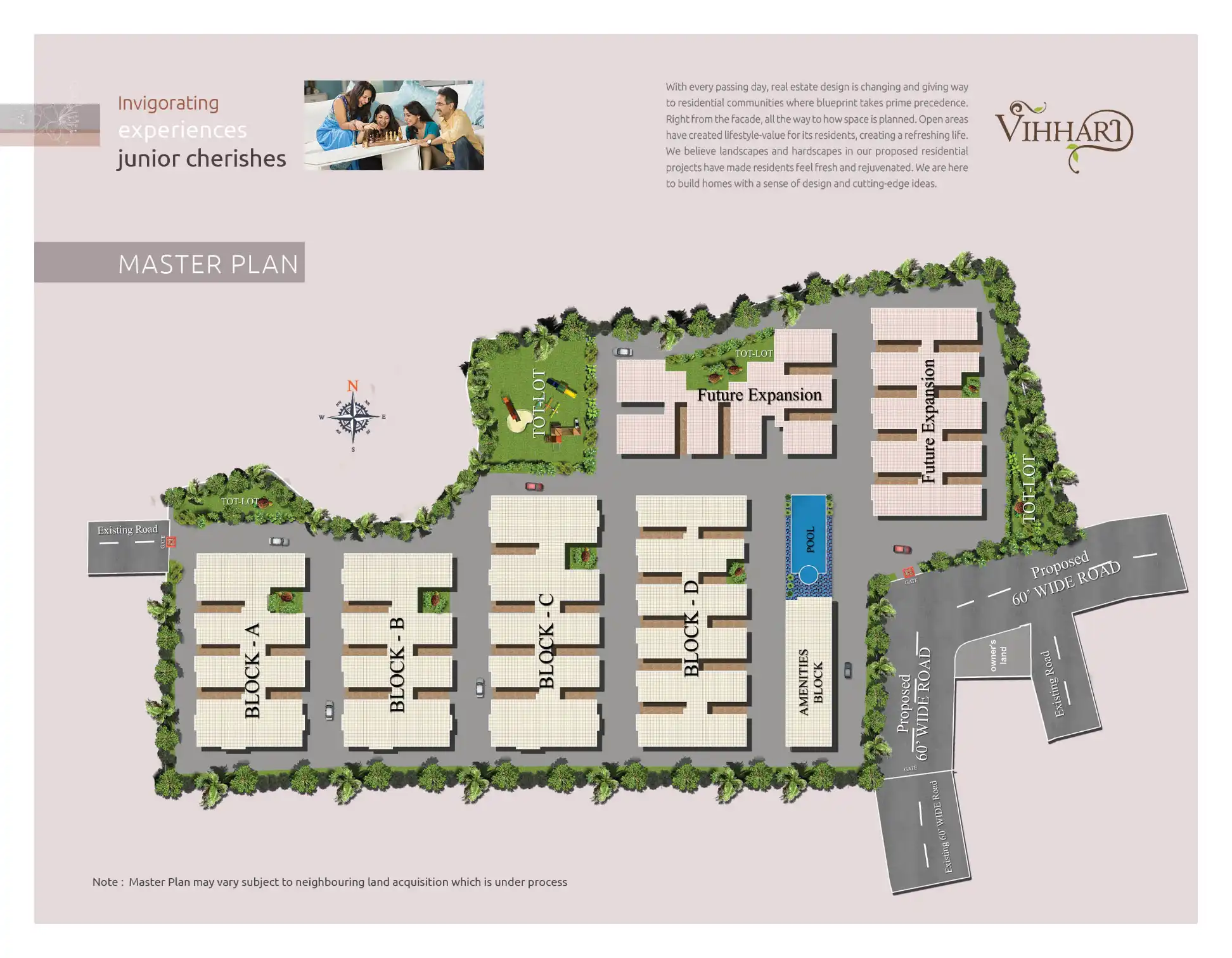 Vihhari is designed to ensure that you are not crammed by darkness by ensuring there are no common walls between any two homes here. Which means, fresh air, natural light and movement of breeze are well in abundance.
