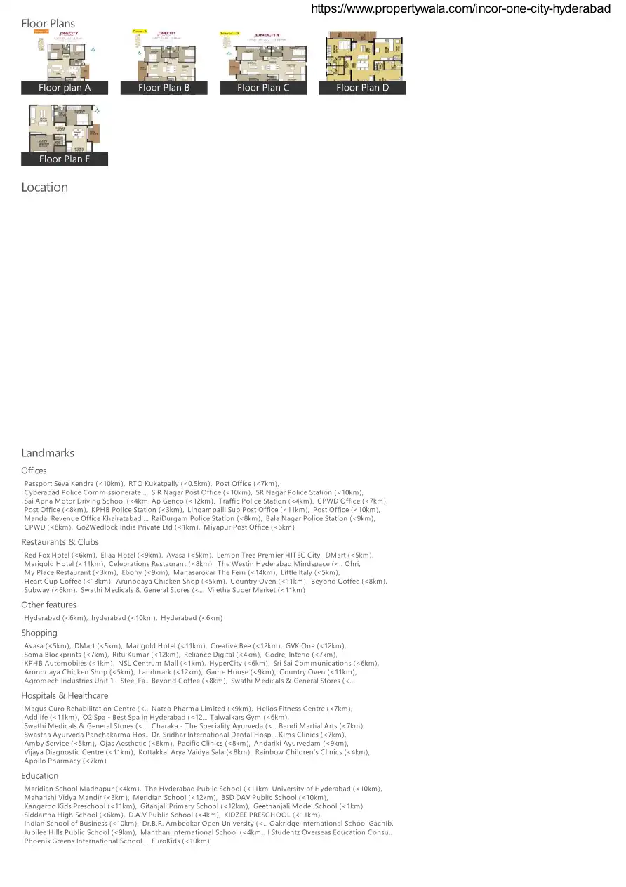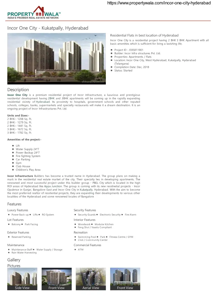 Incor One City is a premium residential project of Incor Infrastructure, a luxurious and prestigious residential development having 2BHK and 3BHK apartments will be coming up in the rapidly expanding residential vicinity of Hyderabad. Its proximity t...