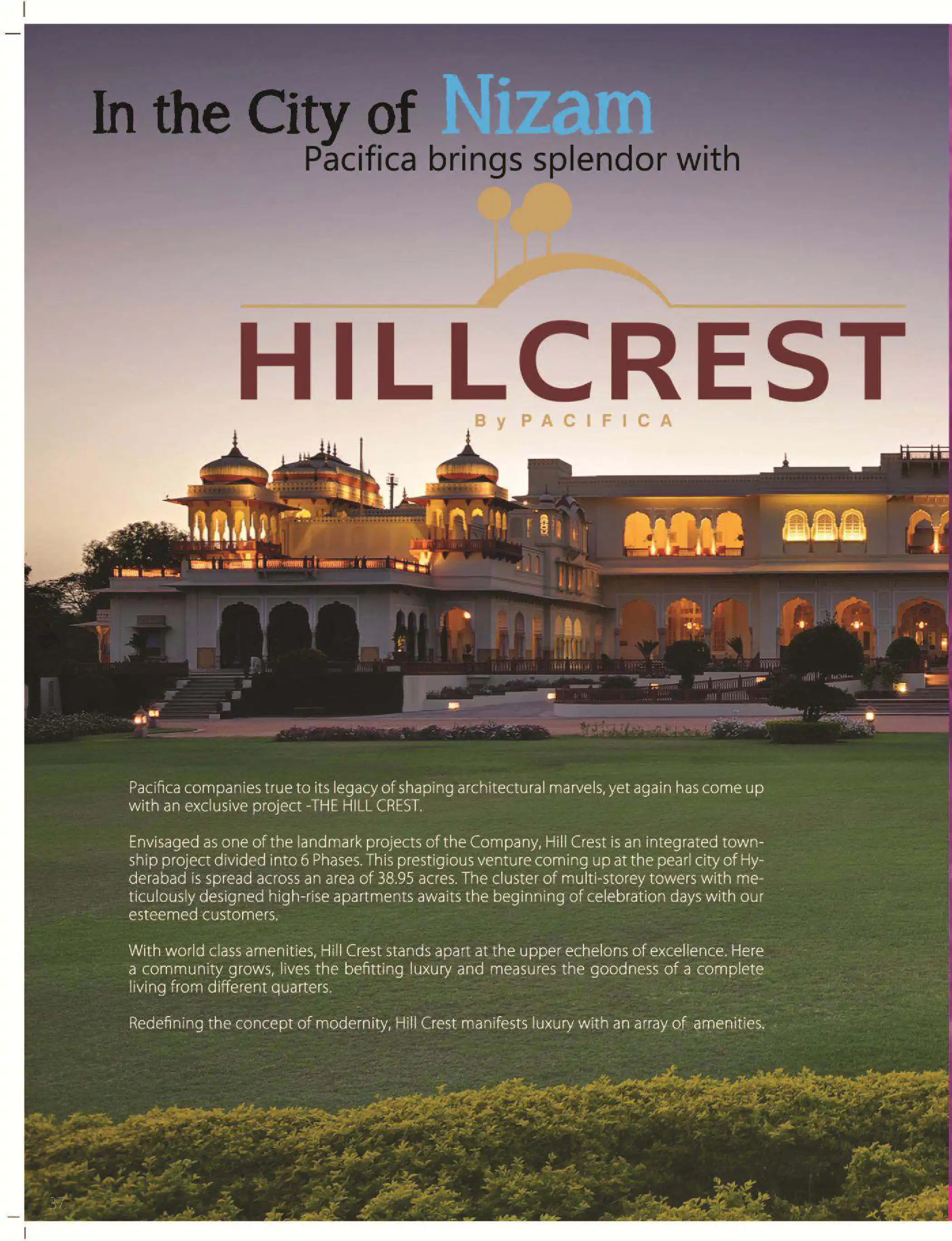 Envisaged as one of the landmark projects of the Company, Hill Crest is an integrated township project divided into 6 Phases. This prestigious venture coming up at the pearl city of Hyderabad is spread across an area of 38.95 acres. The cluster of mu...