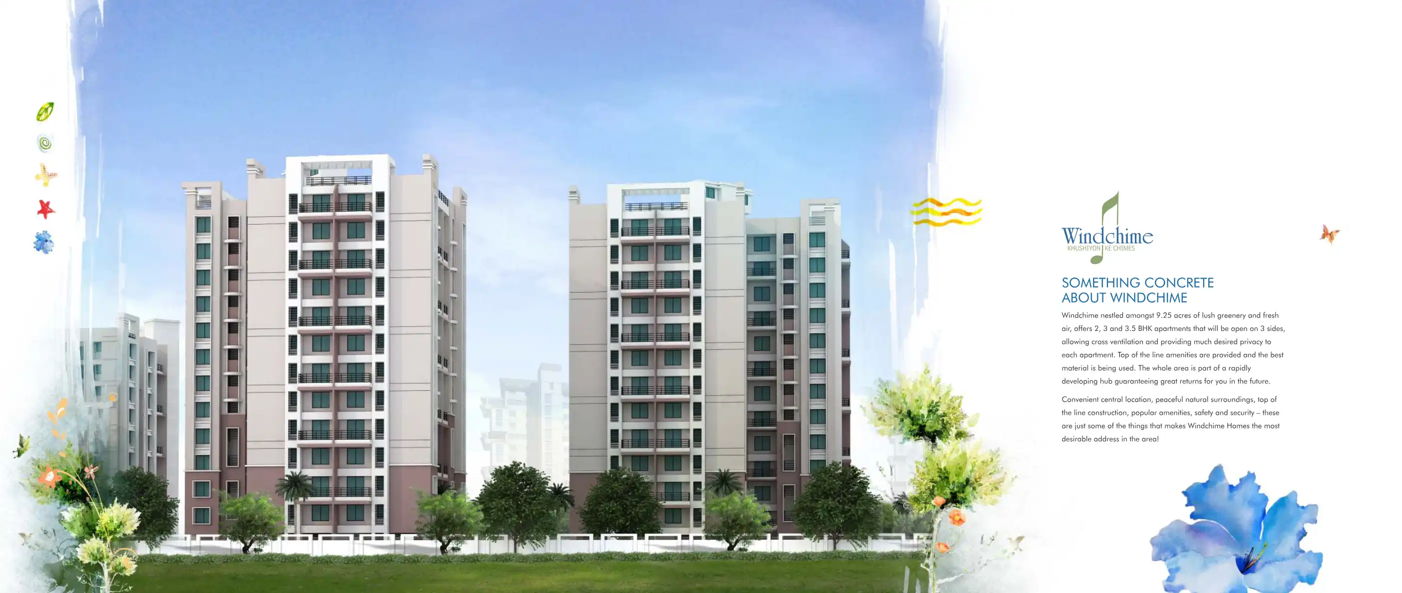 Windchime Homes offers 2, 3 and 3.5 bedrooms three side open apartments to greet abundant natural energies in every home. It is a much applauded project of 8 buildings, two of which were launched in 2008. Several happy families who are first phase cu...