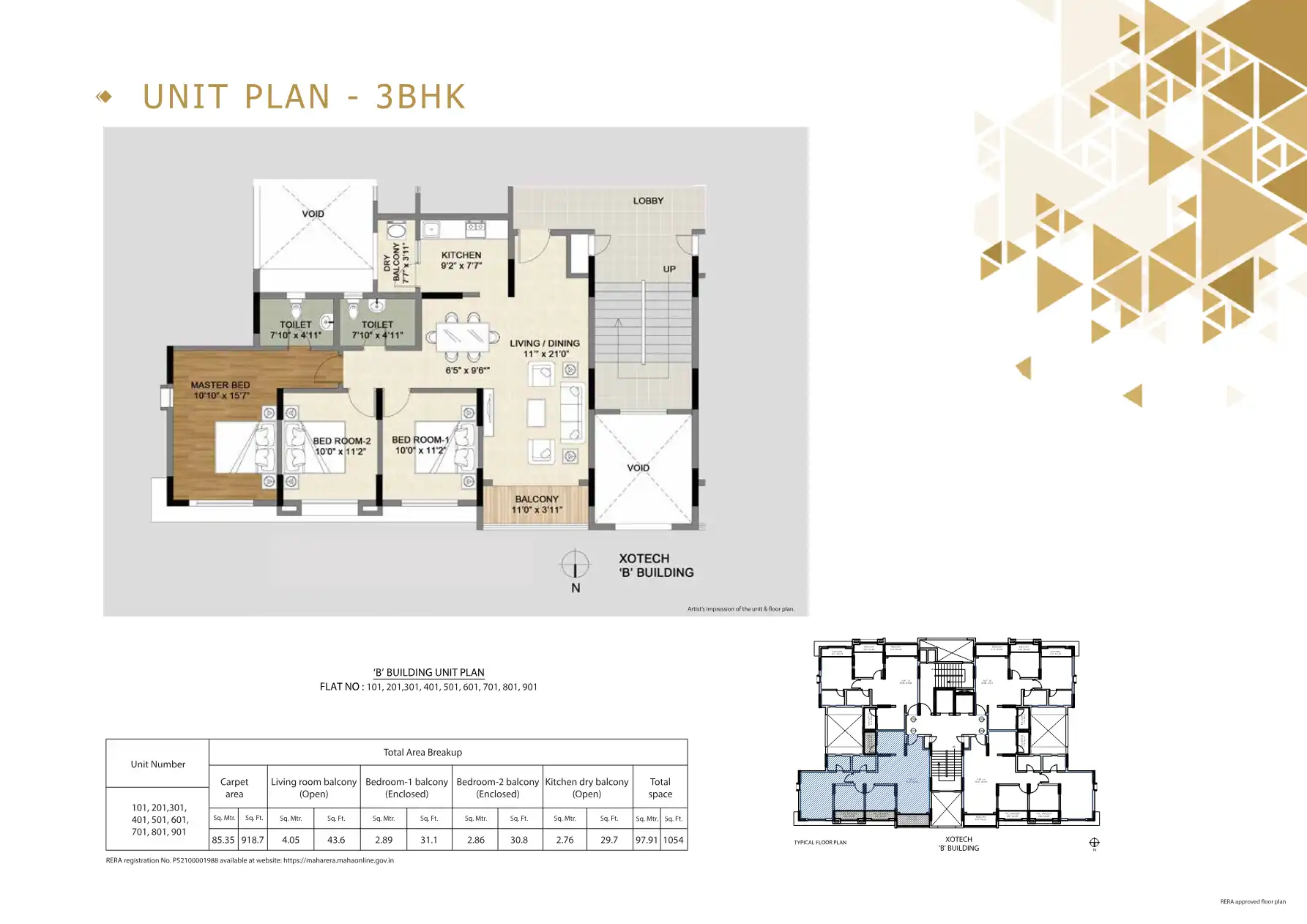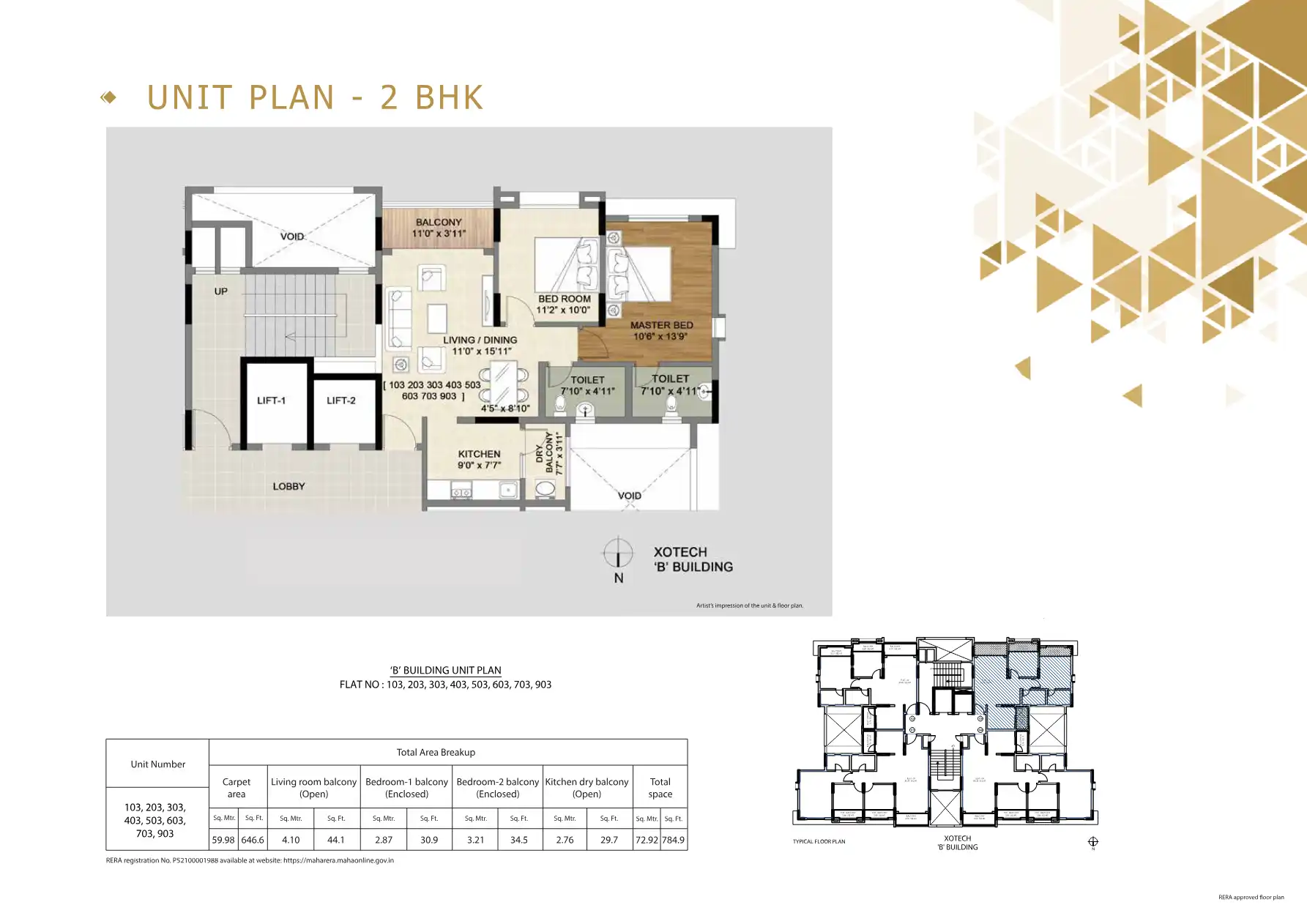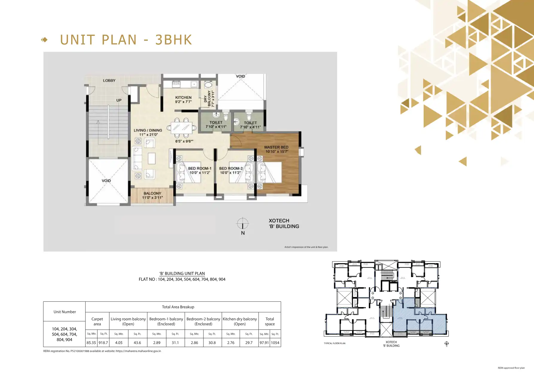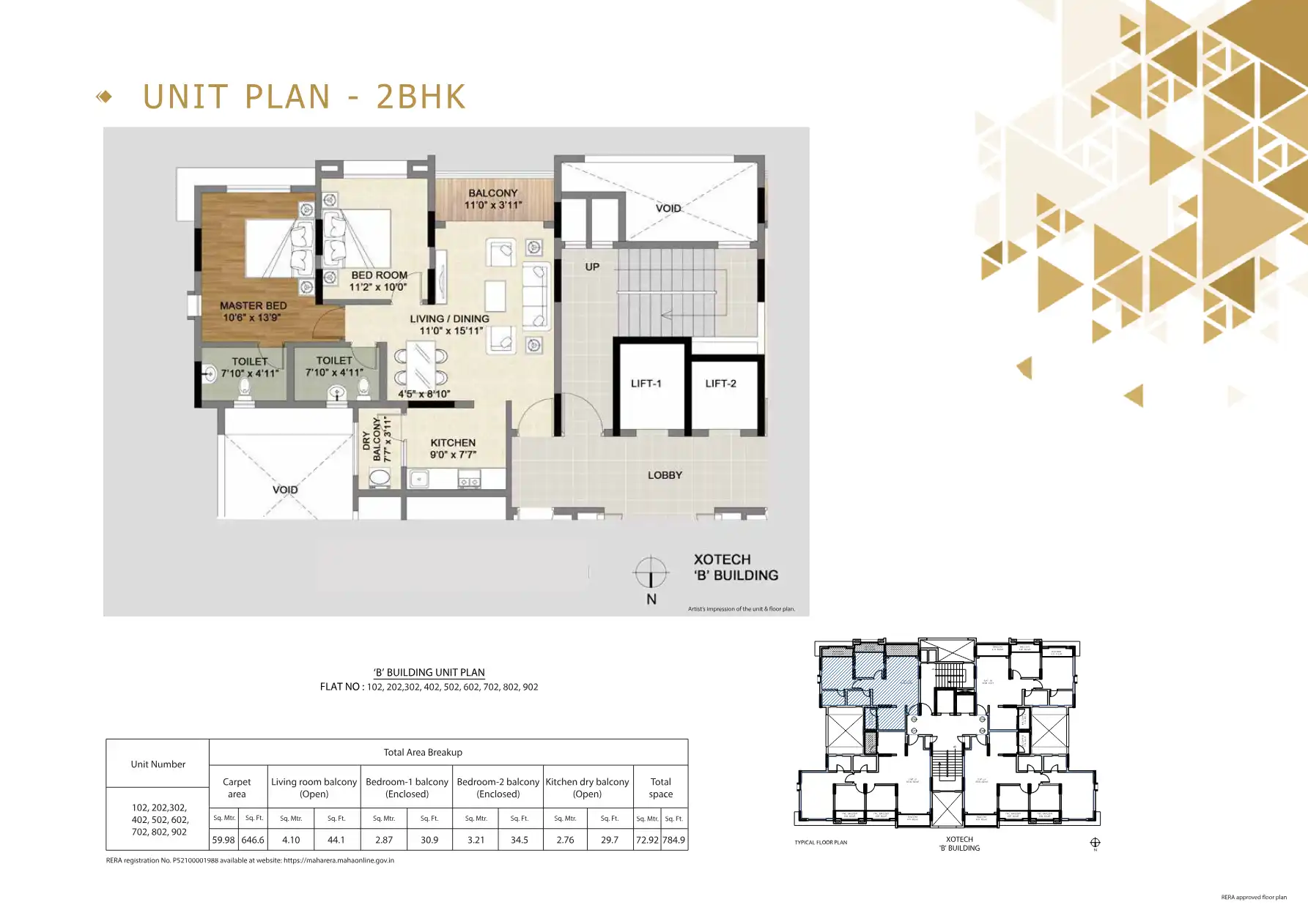 - 784.9 - 1054 sq.ft.
