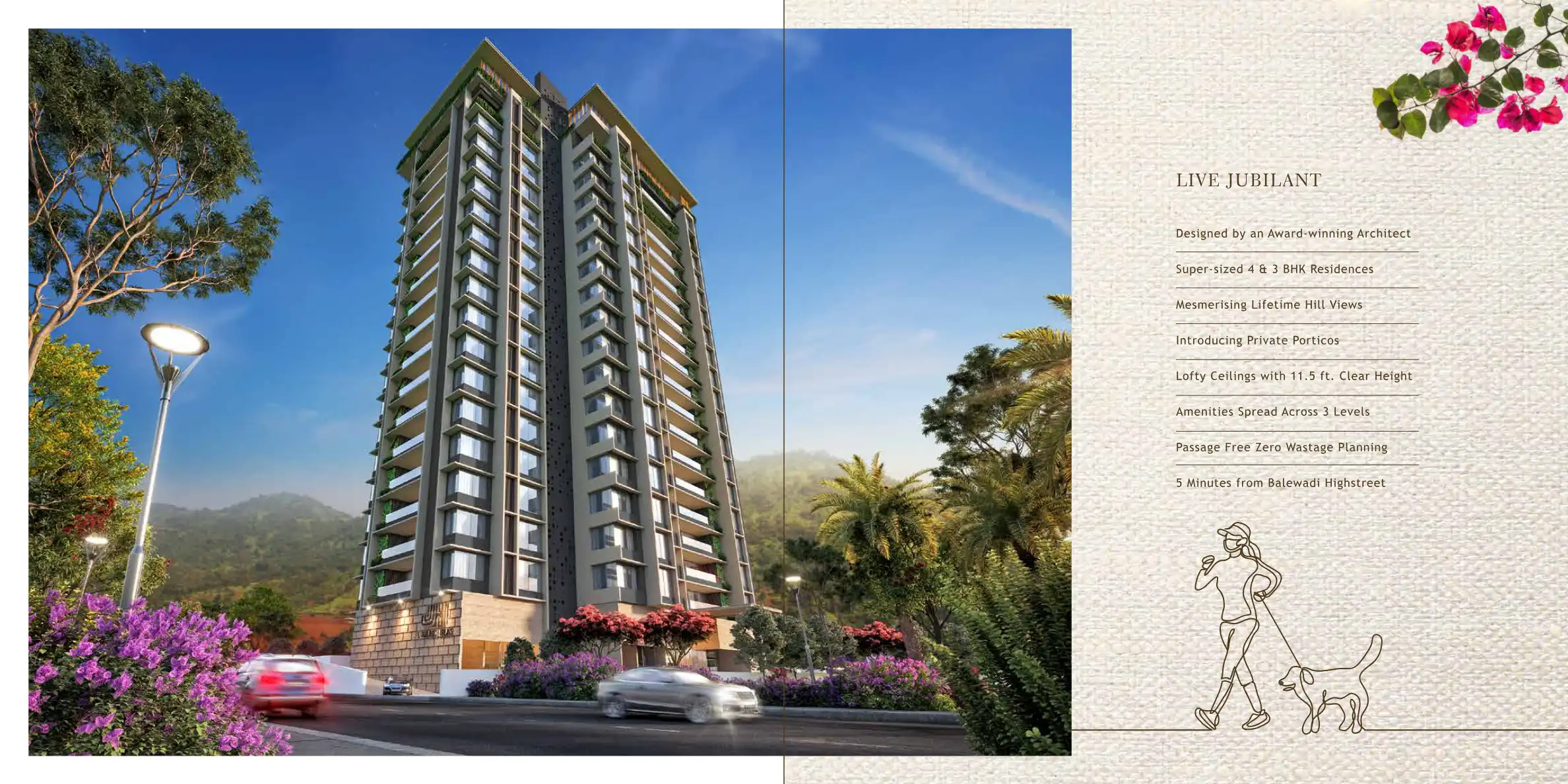 Super-sized 4 & 3 BHK residences in Baner. Designed by an Award-winning Architect. Mesmerising Lifetime Hill Views. Introducing Private Porticos. Lofty Ceilings with 11.5 ft. Clear Height. Amenities Spread Across 3 Levels. Passage Free Zero Wastage P...