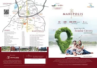 Premium open plots are available in Maheshwaram, Hyderabad. The plots are part of the Srika Mahipolis project.